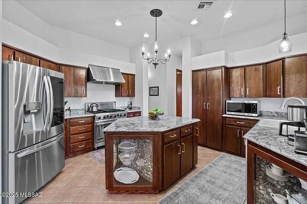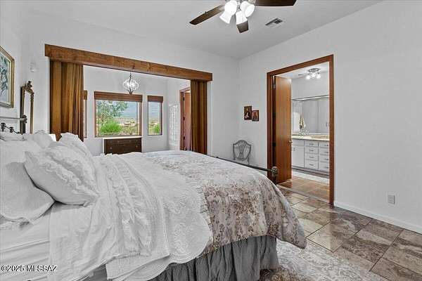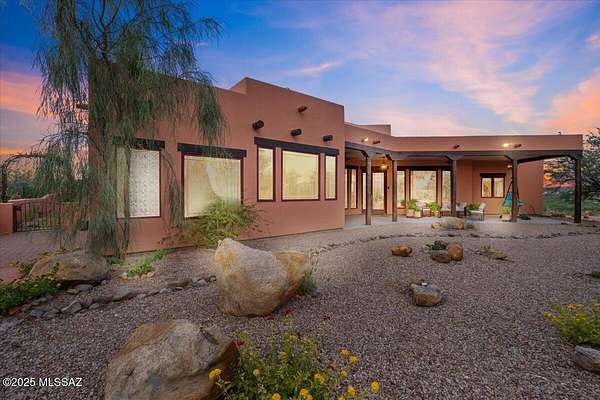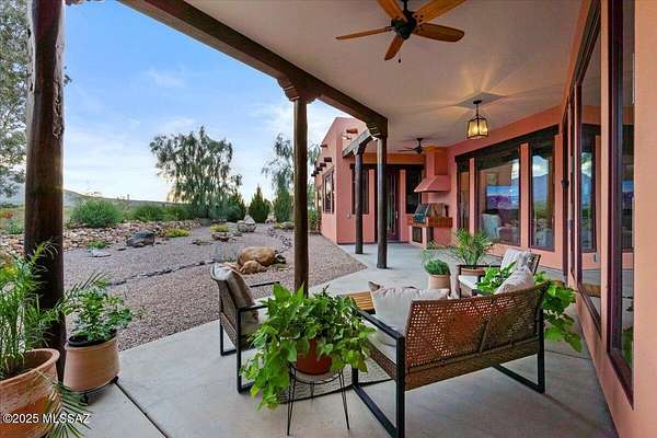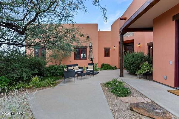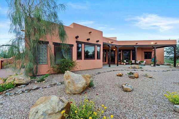 Stunning Custom Built, Southwest-Style Retreat with Panoramic Mesa Views Perched atop a scenic Mesa, this exquisite 4-bedroom, 2.5-bathroom Southwest-style residence is the definition of elegance and thoughtful design. From the moment you arrive-whether through the gated courtyard or the 3-car garage with brand-new polyurethane flooring-you're greeted by beauty, serenity, and unmatched craftsmanship. Step inside to discover spacious, light-filled living areas featuring soaring 12' ceilings, blending timeless style with modern luxury. Exposed wooden beams, a cedar-lined coat closet, and a cozy gas fireplace set the tone in the inviting family room. Adjacent to both casual and formal dining areas, the true chef's kitchen is a standout feature-complete with a Viking 6-burner gas range a custom center island, and a dry bar/coffee station ready for daily use or entertaining. The primary suite is a private sanctuary, offering a generous layout with a sitting area, expansive walk-in closet, a luxurious walk-in shower, and an elegant jetted soaking tub. Additional spaces include a dedicated library, perfect for quiet reading or working from home. All bedrooms have custom built closet systems, 10' ceilings, with 8' solid wood doors Every window with custom blinds, in this thoughtfully landscaped home captures not just breathtaking valley views but also glimpses of the meticulously placed desert flora-each plant hand-selected and cared for via a full-property Wi-Fi controlled drip irrigation system. Outdoor living is equally inspired, with three private patios, each offering its own unique perspective of the stunning surroundings. Entertain in style with a full outdoor kitchen featuring a top-of-the-line Viking Gas Grill with vent hood, or simply relax in the peaceful courtyard under the desert sky. Over the past four years, the current owners have spared no effort in accentuating the beauty and uniqueness of this one-of-a-kind property. Every inch is curated with care, creating a home that is as functional as it is breathtaking. Don't miss your chance to own a true mesa masterpiece-a rare combination of architectural elegance, natural beauty, and unmatched comfort. Come see it in person-this home leaves nothing to be desired! *Home is Occupied, Appointment required!