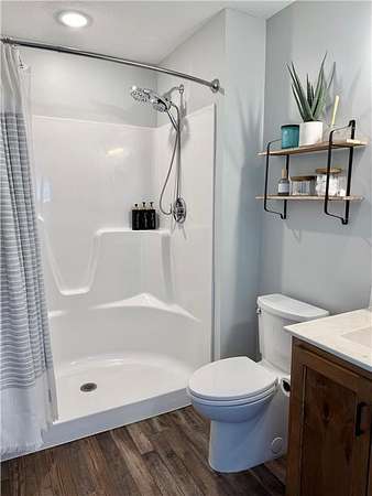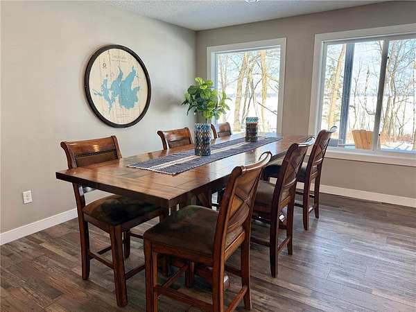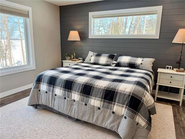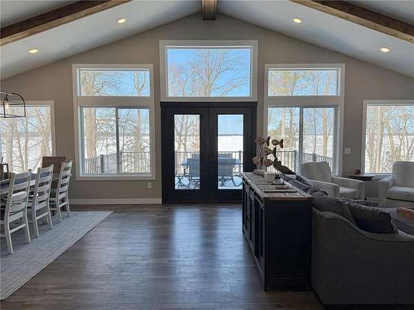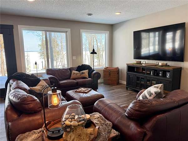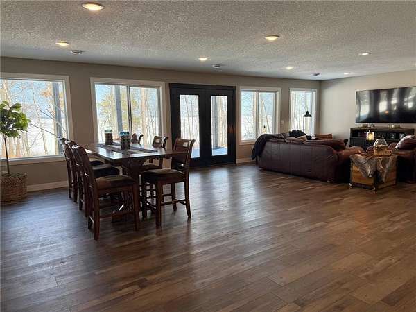 Looking for a unicorn? You just found it. This exceptional Leech Lake home checks every box, featuring world-class water, ideal walk-out elevation, rock and sand frontage, new construction, AND a 40’ x 56’ pole building. Built in 2022 and located in the sought-after Pine Point community, this home was designed for both comfort and entertaining. The main level features an open-concept living space anchored by a stunning kitchen with a large center island and walk-in pantry. The lakeside wall of windows fills the home with natural light, while the gas fireplace creates a warm, inviting atmosphere. A truly unique highlight: TWO MAIN-LEVEL PRIMARY SUITES, thoughtfully positioned on opposite sides of the home, flank the open-concept living area. Each offers a spa-like bathroom with a walk-in shower, private water closet, and generous walk-in closet. There is also a ½ bath on the main level. The walk-out lower level expands your living space with a large family room featuring another wall of windows and patio doors, a roughed-in wet bar, three additional bedrooms, a cozy office (currently housing bunkbeds:)), and two additional bathrooms…perfect for hosting family and guests. Step outside to enjoy effortless lake living with a covered front porch, lakeside deck, and a finished patio beneath with an under-deck ceiling system. The oversized 2-stall heated, insulated attached garage features epoxy floors, floor drains, and a fish cleaning station (which will come in handy when you catch big ol’ walleye’s OFF THE DOCK!). In-floor heat in both the home and attached garage ensures year-round comfort and low-maintenance siding and decking make this home easy living. The driveway and road are fully paved for added convenience. And if all of that is not enough, an impressive 40’ x 56’ pole building includes a concrete floor, electricity, ¾ bath and a 14’ x 16’ overhead door. Don’t forget to check out the virtual tour!