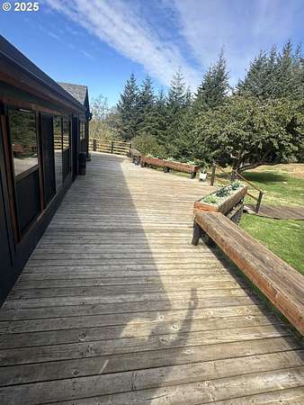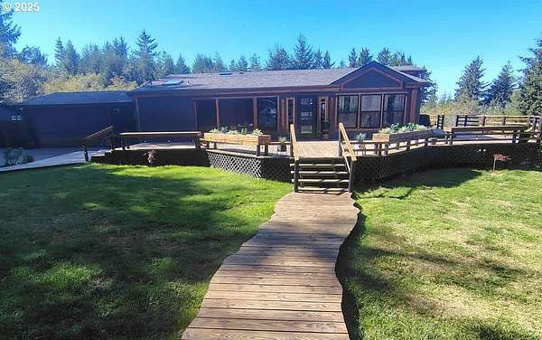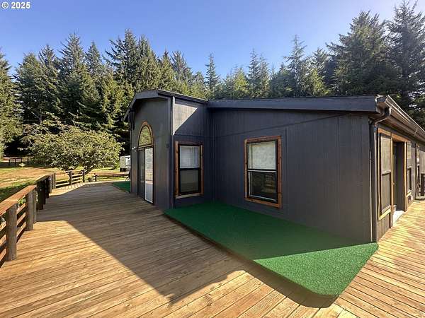 Amazing coastal property set on a generous 2.23 acres. This well-maintained 1,804 sq ft manufactured home offers the perfect blend of comfort and nature. Featuring 3 bedrooms and 2 baths, the home boasts an open-concept kitchen and dining area, perfect for gatherings. Enjoy the expansive wraparound deck with breathtaking views of the surrounding forest and nature in its natural beauty. Gated driveway, with ample parking for vehicles, a trailer and RV parking, making it an ideal fit for anyone looking to live on the Oregon Coast. Two sites available to build a shop or additional out-buildings. Just minutes from town and conveniently located by Oregon's stunning beaches and miles of coastal dunes, this property truly embodies country living at its finest.