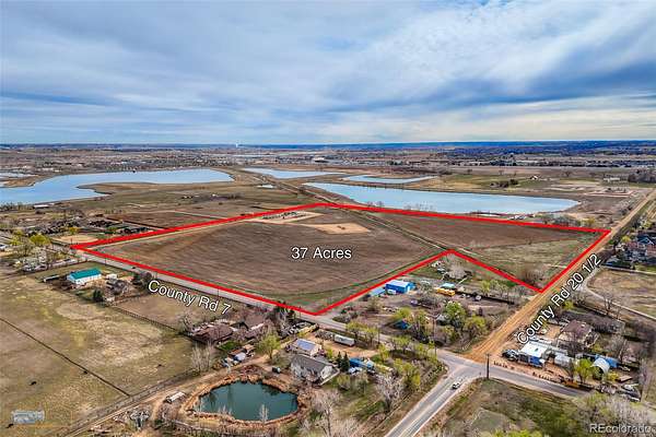 Est $16,902/moDevelopment opportunity! 37 acres with water and sewer in the road. 5 acre Oil Lease in back corner, lease not included. South West facing and awesome back range views .With many luxury homes in the area, could be split into 1 acre lots or larger Luxury home sites. Water rights not included, however ditch water could be leased. Easy access to Hwy 52 and I-25. Rinn Valley Ranch next door. Please view video for surrounding information.