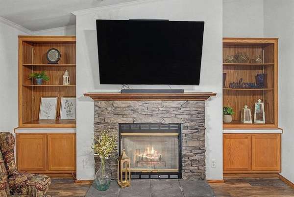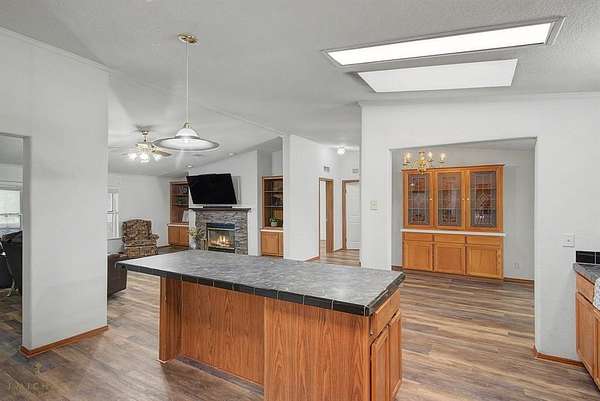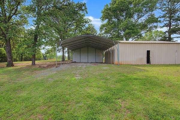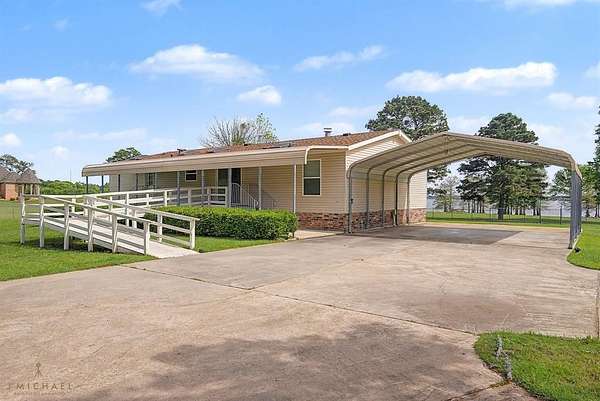 Lakefront Living at Its Finest! Enjoy peaceful waterfront living situated on nearly 5 acres of beautiful Caddo Lake. Gated, private drive provides exceptional privacy and a quiet, secluded atmosphere. Inside, you’ll find wood-look flooring, a cozy fireplace with TV mount, and built-in shelving that adds both style and convenience. The spacious kitchen offers a large island, abundant cabinet storage, and a connected dining area. Skylights bring in plenty of natural light, enhancing the home’s bright and airy feel. Step outside to the show-stopping outdoor living space, complete with picturesque lake setting. This area features outdoor kitchen equipped with built-in grill, custom overhead vent, mini fridge, and sink, along with electrical setup and space for an outdoor TV—ideal fully screened area for entertaining year-round. Additional features include a large workshop with electricity and covered storage for your boat or ATV. Call today for your private showing and experience lakefront living at its best!!!