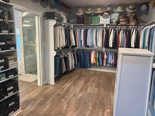 The primary suite is your private retreat with a spa-style Hollywood bath and an enormous walk-in closet with custom organization. Secondary bedrooms are tucked away and connected by a Jack-and-Jill bath, perfect for family or guests.