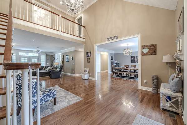 Welcome to your own private retreat! This stunning 4-bedroom, 5-bath estate is nestled on 8+/- acres at the end of a quiet cul-de-sac, offering privacy, serenity, & beautiful frontage on Horse Creek. With over 5,600 sq ft of thoughtfully designed living space, this home is perfect for both everyday living & entertaining. Main level features a spacious primary suite with luxury bath & steam shower, large breakfast area & separate formal dining room. Upstairs includes 2 bedrooms plus 2 bonus rooms (potential additional bedrooms), including a 26x22 bonus with private garage entrance—ideal for guests or flex space. 3-car garage with room for vehicles, boat, or ATVs. Outdoor living is unmatched with a 20x40 inground saltwater pool & pool house/mother-in-law suite featuring full bath, vaulted ceilings, and private entrance. Enjoy direct access to Horse Creek right from your backyard—perfect for fishing, kayaking, or relaxing. A rare combination of space, privacy, and amenities!