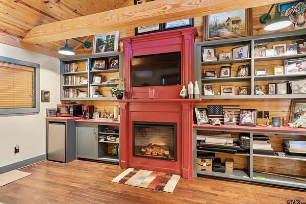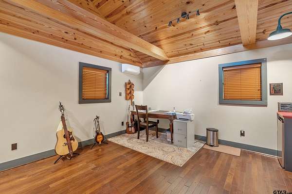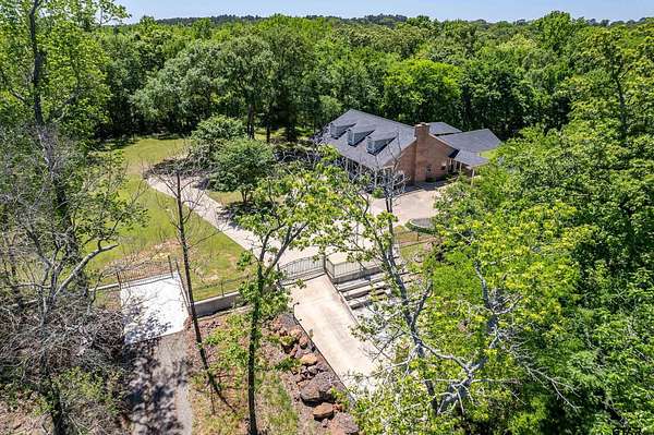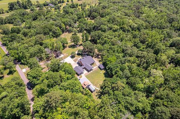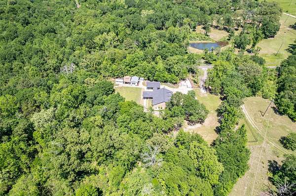 Tucked away on 3.2 wooded acres in Alba, this single-level home offers the perfect blend of privacy, charm, and versatility. As you enter, you're welcomed by high ceilings and a warm living room filled with natural light, featuring wood floors, a cozy fireplace, and scenic views out every window. The kitchen and dining area just off the living space offer ample cabinetry and a gas cooktop range, making it easy to entertain or enjoy quiet evenings at home. The primary bedroom includes an en suite bath and spacious closet, while a second bedroom and shared bathroom provide room for guests or family. A third flexible space off the entry--perfect as an additional bedroom, office, or hobby room--opens up to a large covered sunroom overlooking the serene landscape. Out back, enjoy the peaceful sights and sounds of nature from a massive 24x40 covered patio facing Cottonwood Creek, or unwind on the sprawling 50-foot front porch. The property features two separate covered parking areas ideal for RV or boat storage, as well as two climate-controlled outbuildings--one currently used as an office with an electric fireplace, the other as a home gym. Additional storage buildings (10x20 and 8x10, both on slab) offer plenty of space for tools, hobbies, or projects. There is decorative wrought iron fencing on the property and includes a 140-foot concrete driveway with an automatic gate and beautiful iron ore stonework that frames unforgettable sunset views. Wildlife abounds, adding to the peaceful, private setting. Just 90 minutes east of Dallas and only 10 minutes from Lake Fork, this unique retreat has it all--including a new survey and fiber optic internet. Don't miss this one-of-a-kind East Texas escape--call to schedule your private showing today!