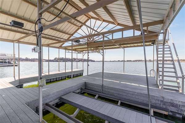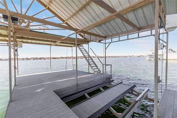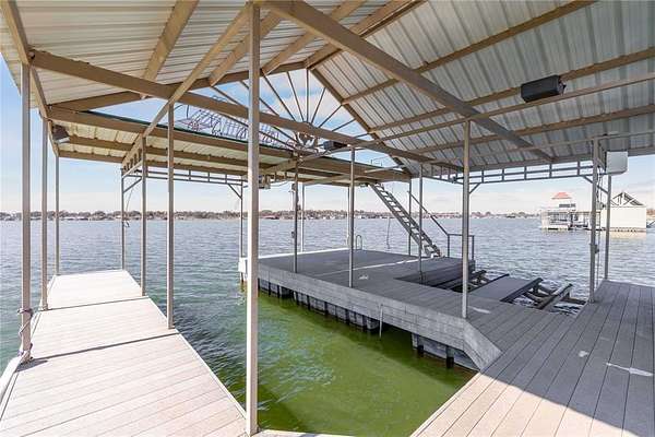 This property features a large boat dock equipped with a hydro-lift boat slip, two jet ski slips, and an 18-foot water depth. Whether you are hosting on the spacious covered deck or soaking up the rays on the expansive upper-level sun deck, the layout is designed for optimum enjoyment and entertaining.