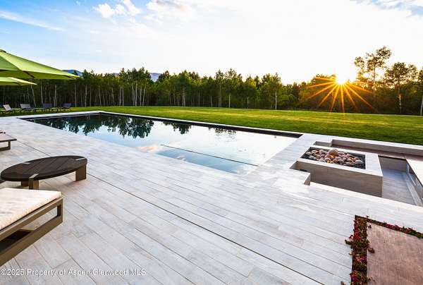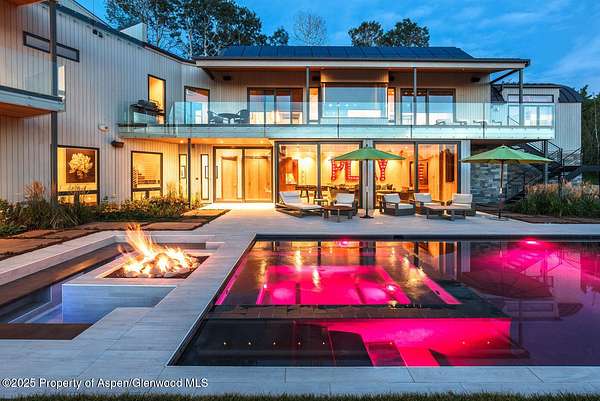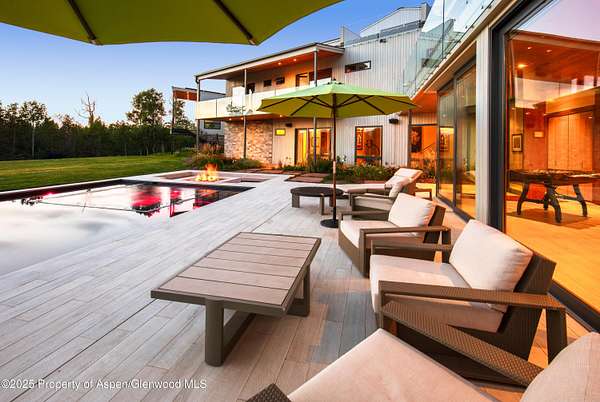 975 S Starwood is a beautifully appointed home exceeding 5000 square feet, situated on 2.7 acres of flat land with expansive views of the Elk Mountain Range. This 5-bedroom, 6-bathroom home in the exclusive Starwood gated community is the ultimate family retreat, offering a flat yard ideal for play and activities, along with a swimming pool and hot tub. Over 900 square feet of outdoor deck space is perfect for summer dining and entertaining. Downstairs, an entertainment and game room awaits, complete with ping pong and foosball tables, and lift slide doors that open directly onto the yard, where the pool and hot tub are located. The fifth bedroom can also serve as an office, providing flexibility for your needs. Additionally, a three-car garage offers ample space for storing vehicles and all your gear. Just a 12-minute drive from downtown Aspen, this property was designed by local architect Rally Dupps and built by Steeplechase Construction.