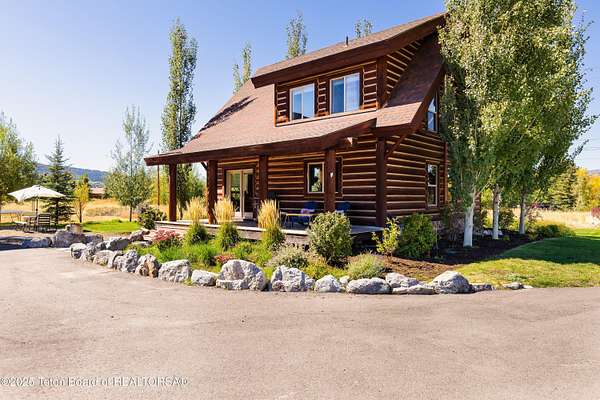 Charming 3-bed, 3-bath home with log accents on 2 ac in Victor, ID. The main level features large, south-facing windows that flood the interior with natural light & provide excellent solar gain. The upper level boasts a beautifully remodeled primary suite (2021), complete with a luxurious steam shower. The lower level offers 2 beds, 1 bath & additional living space. Mature landscaping surrounds the home, for a serene setting & room to enjoy outdoor living. No CCRs mean this property offers flexibility, including the ability to keep horses or other animals. A detached garage with a 1-bed, 1-bath apartment provides guest accommodations or rental income potential. Ideally located near Downtown Victor, with easy access to Jackson Hole, this property combines mountain charm and convenience