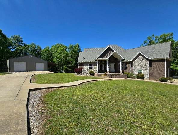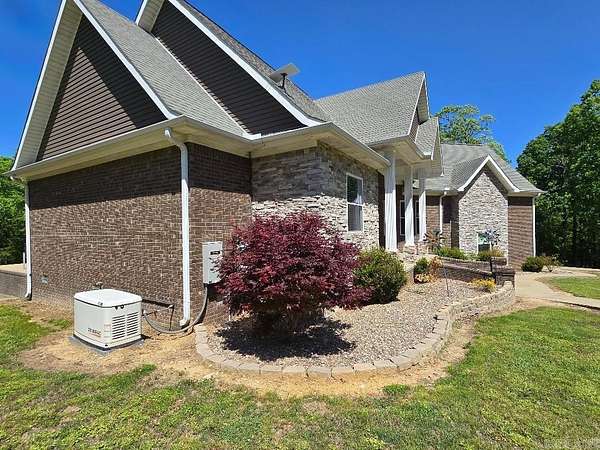 Peace and privacy await! With almost 39 acres, this 3 BR/3BA retreat offers privacy and comfort. First impression, a concrete drive leads to both the home and 40x40 shop. The inviting front porch and huge patio are ideal for outdoor entertaining. The main level offers a spacious great room that includes the living room and a kitchen featuring black shaker-style cabinetry with pull-out storage and granite countertops. A beautiful double-sided fireplace wall offers warmth and visual appeal while connecting the living room and formal dining. The primary suite offers solitude with a generous bedroom, dual vanities, walk-in closet, tub, and a spa-inspired shower complete with a built-in bench and rainfall showerhead. Also on the main level are two more bedrooms, a full bath, and office. Upstairs is a bonus room, a full bath, and walk-in attic access. Outdoors, enjoy a beautifully maintained lawn and pond. A storm shelter & backup generator ensures peace of mind year-round. A pad is ready and there are extra bricks included for a future outdoor kitchen should buyer choose.