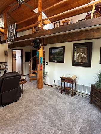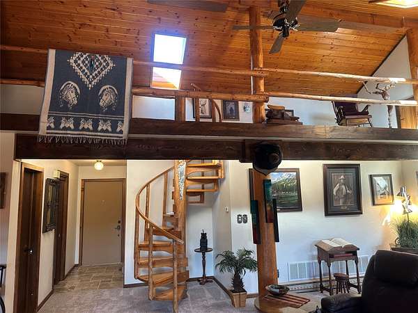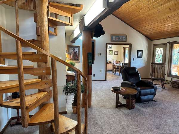 975 Whitetail Drive: First time on the market! 1979 Ranch Style Home quite unpretentious. They don't build them like this anymore! The home features many original touches, wonderfully nostalgic, and upgrades for easy living~ Original floorplan, Main Level 1,903 finished sq ft: Large Kitchen and eating area some newer stainless appliances. The original double wall ovens, accent brick wall with propane heater remains. New flooring: Beautiful Travertine Tile is timeless! Living room with loft, has fireplace, Cathedral Tongue & Groove Ceilings, Fresh Carpet and amazing loft, guest nook. Custom spiral staircase & log accents for an artistic touch. Main Level Primary is separate and private the on suite: is BEAUTIFUL and SPA LIKE! Travertine Tile, Level Floor Walk-in Shower, Oversize wall tile and niche! Custom Walnut countertop, glass vessel sinks, AWESOME! The full bath off the living room is a mixture of new fixtures, Deep Soaker Tub, new tile. original sink and countertop. Pocket door connects Guest Bedroom to the bath. Centrally located off the attached garage, a half bath and Bonus room with washer/dryer and access to the covered deck. Wonderful floorplan designed to keep in and out traffic through the Bonus room. Stairway to the lower level, daylight-walkout. Utilities: Water Treatment System, Electrical Panels Generator Converter, Furnace and wood burning wood burning stove. LOTS of unfinished space just waiting to be finished to meet your needs. Finished: 2,231 sq ft: 1,903 main level and 328 Loft: 3 bd/ 2.5 ba.. LOWER LEVEL 1,903 sq feet unfinished. TOTAL 4,134 square feet under roof. The Southern Exposure is most desirable. BEAUTIFUL VIEWS wonderful winter sun. Covered Deck, custom railings, freshly stained and ready to enjoy throughout the seasons. Property Overlooks a total of 16.42 Acres of Common Ground with a walking trail, that meanders along Trail Creek. The Original Homestead Cabin and Pavilion is available to enjoy. 2.31 Level usable acres, there is room to expand with outbuildings. The home built on a bench to maximize views and land use!