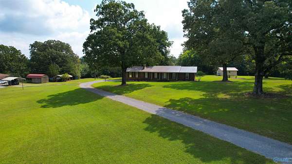 This classic brick rancher has 4 bedrooms and 2 baths, large living and entertaining areas with a big beautiful brick fireplace and natural gas logs. It sits on approximately 24.2 acres with a 18' X 40' barn, a 16' X 24' storage building and an 18' X 20' metal carport. Lots of beautiful shade trees, a rose garden and a back patio area in the back yard round out the 3.4 acre parcel that the house sits on. The additional acreage is included in 2 more parcels and is wooded. The location of this property is very convenient for commuting to the Shoals area, or to the Decatur/Huntsville area, as it is between AL-24 and AL-72.