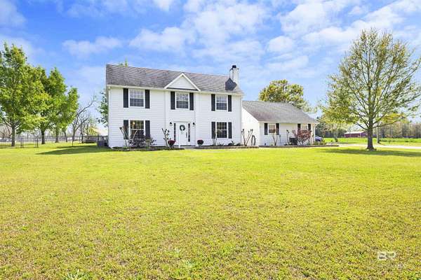 Nestled on approximately 5 acres, this two-story home offers a blend of comfort and functionality. Features include a wood-burning fireplace, a spacious screened porch (14x21), and an in-ground pool (18x32, up to 8 ft deep).A separate ground-level garage apartment with a full bath and kitchenette provides flexible-use space. Attic area includes climate-controlled storage.The fenced backyard features a dedicated dog run and mature pecan trees. A large barn includes electricity, a 30x40 covered area, two roll-up doors, a standard entry door, and a skylight, offering ample space for storage or workspace needs.All measurements, features, and details are approximate. Buyer to verify all information during due diligence.