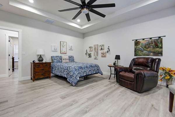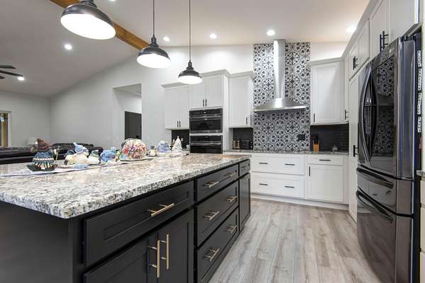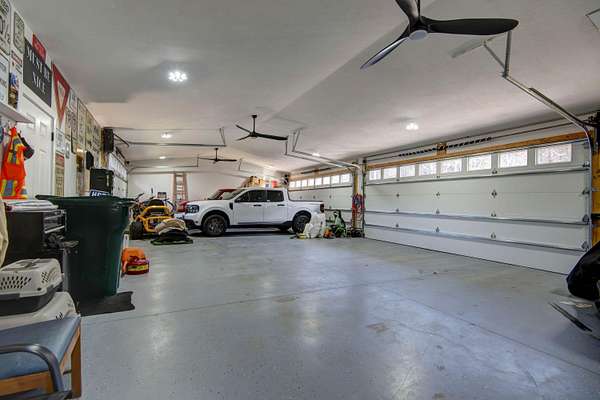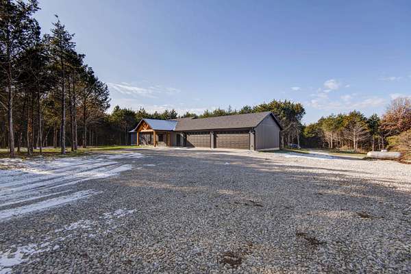 This builders home combines modern features, practicality, space and style on this wooded, 5 acre, serene setting. This single-level, zero entry home offers easy living with no steps and durable LVP flooring throughout. It includes 3 bedrooms, 2 baths, large closets and an inviting open concept living area. The kitchen is amazing with a large central island, abundant counter space, upscale appliances and an oversized pantry perfect for storage and organizing. Car enthusiasts will appreciate the two double-car garages, providing 4 covered parking spaces. One garage offers a convenient drive through capability and all three garage doors are 8x18 making maneuvering and storage effortless. The outdoor living is just as great with patios in the front, back and off the primary suite along with a welcoming front porch. This home is ideal for relaxing and enjoying the beautiful natural setting.