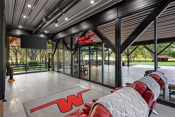 Encompassing five pristine acres, this exceptional compound offers a rare blend of privacy, craftsmanship, and refined outdoor living. Framed by mature oaks and approached by a picturesque, tree-lined drive, the property unfolds as a secluded retreat designed for casual entertaining and boundless enjoyment of serious hobbies and collections.