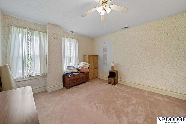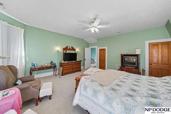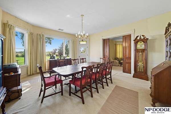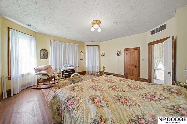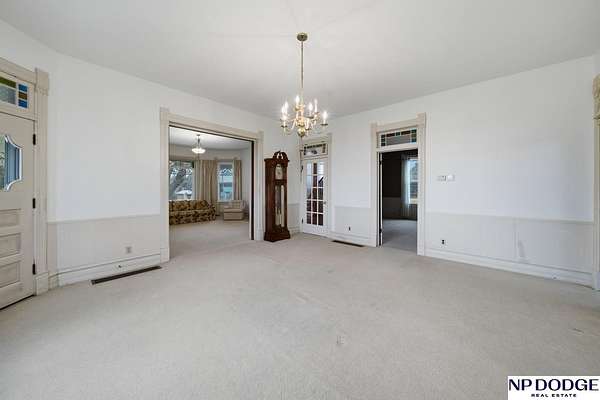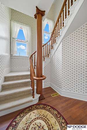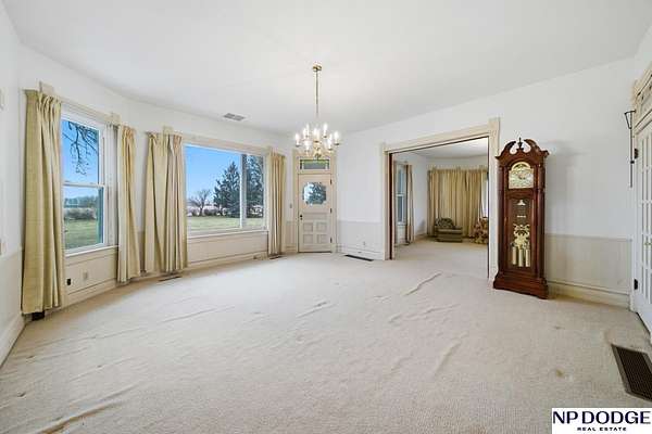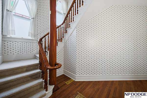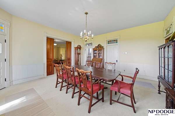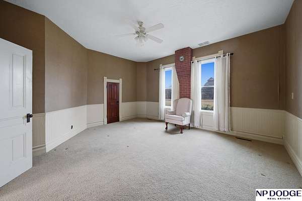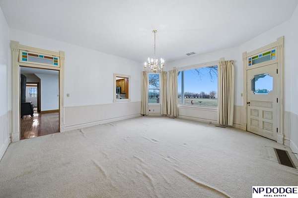 AshleyNicole Fowler, M: 402-719-8777, ashleynicolerealtor@gmail.com, https://www.Ashley.Realtor - Step back in time with this stunning 1904 home set on nearly 6 acres. The wrap-around porch, adorned with gingerbread accents and freshly painted peaks, welcomes you home. Inside, over 3,800 sq ft of finished living space offers 5 spacious bedrooms plus a library or office, each with generous closet space. The gorgeous staircase makes a great first impression in the front entry, while stained-glass transition windows, a cozy fireplace, and a wood-burning stove add warmth and character. The kitchen features some newer stainless steel appliances, a center island, and abundant cabinetry. Enjoy the mix of parquet and wood flooring, main floor laundry, and a mudroom with locker-style storage. With vinyl siding, a new roof, many vinyl windows, and rural water, this property offers the perfect balance of history and beauty.