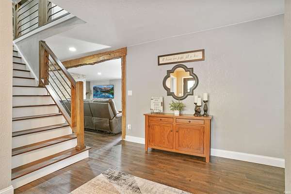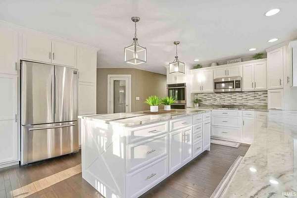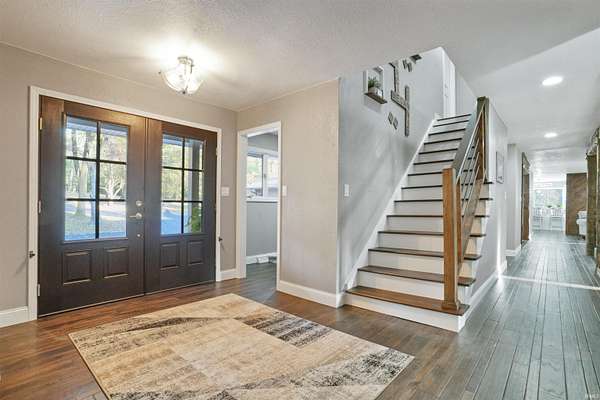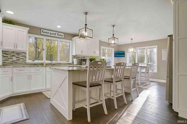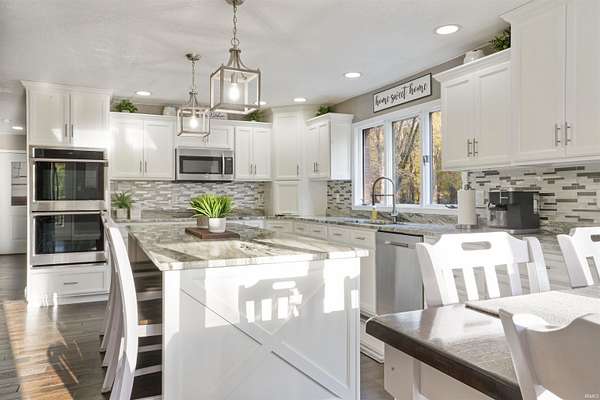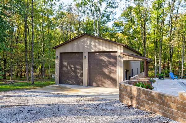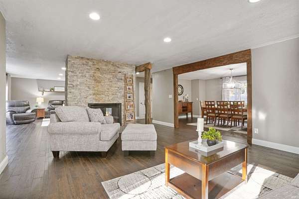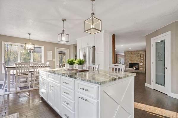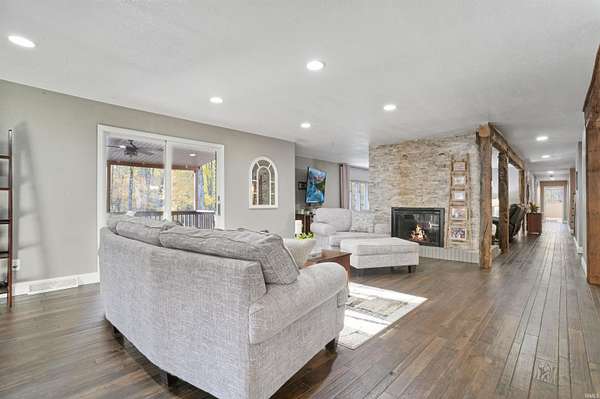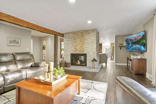 Nestled in a serene, wooded neighborhood on a peaceful dead end street, this beautifully updated 5-bedroom, 3.5-bath home features 4,047 square feet of finished living space, plus an additional 1,879 square feet in the basement -- including 500 finished square feet and a separate storage room. Set on 2 acres and backing up to the woods, the property provides peaceful, scenic views and an abundance of wildlife. Spacious and thoughtfully designed, nearly every inch has been meticulously renovated over the past several years.Step inside from the covered porch into a welcoming foyer featuring an attached mudroom and beautiful hardwood floors that extend throughout the home. The living spaces blend charm with modern elegance, highlighted by hand-hewn barnwood beams and a striking two-way brick fireplace that seamlessly connects the formal living room and family room. The open floor plan flows effortlessly into a spacious kitchen, equipped with a large island, cozy breakfast nook, walk-in pantry, stainless steel appliances, marble countertops, custom Amish-built cabinetry, and updated lighting and hardware. Adjacent to the kitchen, the formal dining room provides ample space for hosting family gatherings or entertaining guests.The main level features a spacious owner's suite with a newly updated double vanity, walk-in shower, and ample closet space. Also on the main level are 3 additional bedrooms and 1.5 bathrooms, along with a newly renovated laundry room. Upstairs, you'll discover an oversized fifth bedroom complete with two closets, a full bathroom, and a walk-in attic space. The fully waterproofed walkout basement includes a partially finished space ideal for a home gym or recreation room, a large unfinished area for storage, and a wood-burning furnace.Outside, enjoy two covered decks overlooking a beautifully maintained in-ground heated pool, complete with a recently replaced electric cover and pump--ideal for both relaxation and entertaining. The outdoor space has been thoughtfully upgraded with refreshed landscaping, new siding, resurfaced and sealed asphalt, a new retaining wall, and a fenced pool area with a concrete surround. Added in 2021, a 30x50 heated Amish-built metal barn with a concrete pad and half bath offers the perfect space for hobbies, projects, and additional parking.With its blend of modern updates, rustic charm, and peaceful surroundings, this exceptional property is ready to welcome its next owner.