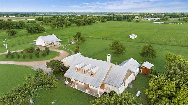 Beautiful and RARE 26.1 acres Equestrian Farm located 30 minutes from Dallas and 1 mile from Heath and Rockwall county. In addition to the 26.1 AG Exempt acres, there is an additional 5.38 grazing easement, making the usable space for grazing 31.48 acres. This charming Hill-Country Ranch home has a split floor plan with the primary suite tucked away at the back of the home and the remaining 2 bedrooms split with a shared bathroom between. Upon entry, a large formal dining area that has views of the front pasture and evening sunsets. The family room has a beautiful Austin stone fireplace, wood flooring and a huge wood beam that expands from the living area through the open kitchen area. The kitchen has granite counters, walk in pantry & plenty of cabinets with a nice sized breakfast area that overlooks the patio and beyond to the beautiful pasture views. The utility room is located near the entry to the garage along with the third full bathroom. Don't miss the 30x40 3-stall barn with overhangs on each side. Additionally, the property has 3 horse paddocks, 2 have run-in horse shelters and are pipe fenced with horse wire and underground water available), a large livestock holding area, a small horse or cow grazing pen, and a large cattle pasture with trees and pond. The pastures are cross fenced, and there are two ponds stocked with wide-mouthed bass. 2025 updates include: exterior and interior paint, carpet, wood beam. Such a beautiful ranch --- the photos barely do it justice!