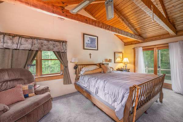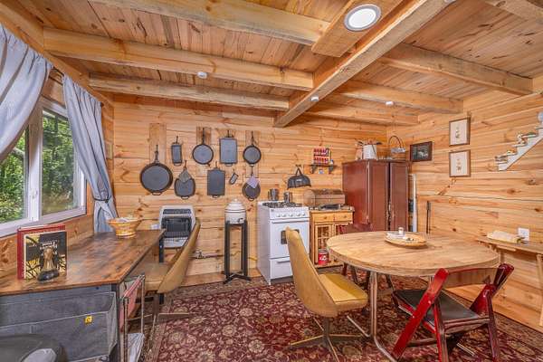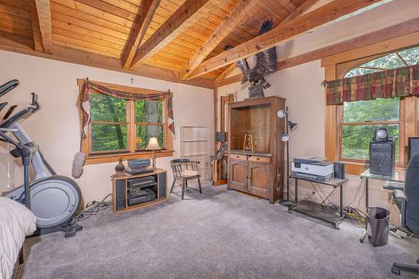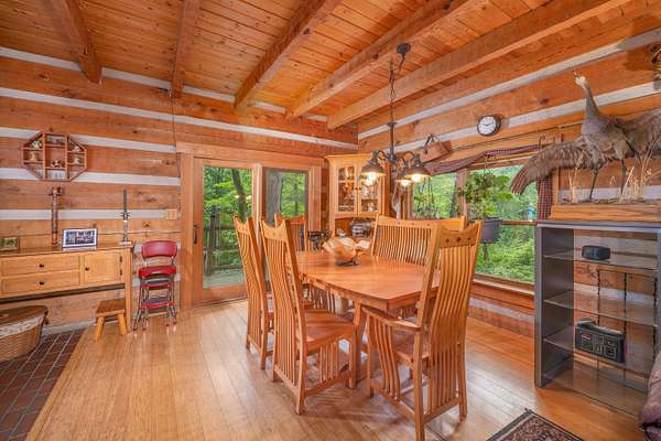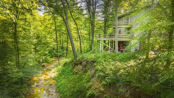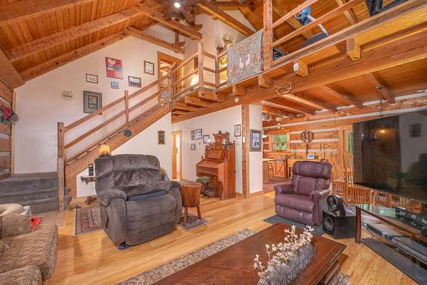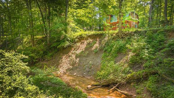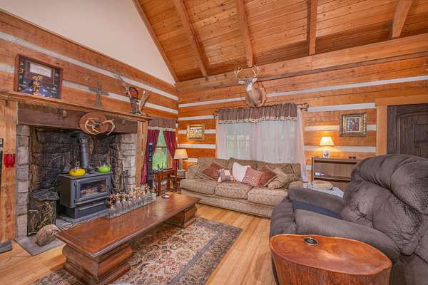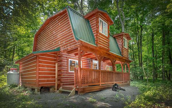 Whether you're looking for a forever home, a second home, or a hunting retreat, this secluded log cabin offers the rare combination of privacy, tranquility, and the comforting sense of being surrounded by nature. This 12 wooded acres across four parcels in Mount Vernon, is the ideal retreat. Appalachian log home built with hickory logs offers timeless craftsmanship, thoughtful design & natural seclusion. With over 2,000 sq ft, this two-bedroom, two-bathroom home blends rustic charm with modern comfort in a private, retreat-like setting. Inside, you'll find authentic log walls with exposed beams, warm wood tones & light chinking that highlights the grain of the hickory. A vaulted ceiling with an open loft above the kitchen & living room enhances space & light, while a wood-burning fireplace anchors the living area. Bamboo floors stained in dark walnut add richness in the space. The bedrooms are generously sized, with the primary featuring an ensuite bath & walk-in closet. Recent updates include a new heat pump, furnace, central A/C & electrical improvements. The full basement offers storage & workspace. The home is supplied by fresh spring water, supporting a self-sufficient lifestyle. Set deep within mature woods, the property is surrounded by uninterrupted views of trees & wildlife in every direction. A separate Amish-built log guest cabin, constructed in 2021, sits just a short distance from the main home. It overlooks the ravine & Armstrong Run, offering quiet seclusion & scenic views. Features include a loft, outhouse, propane heater, wood stove, generator hookup & additional storage - ideal for guests or a creative retreat. Armstrong Run flows through the land, adding the peaceful sound of moving water in the spring. Whether sipping coffee on the porch or enjoying the filtered light through the trees, this setting is both private & awe-inspiring. A rare opportunity for true immersion in nature without sacrificing comfort.