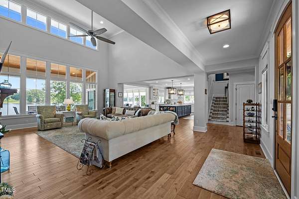 Experience the pinnacle of lakefront living in this custom-built luxury estate nestled in this prestigious gated community -The Reserve at Hyco Lake! Set on a prime waterfront lot, this 4224 sq.ft. home offers panoramic views of the lake from nearly every room, blending elegance with the tranquility of nature,with a harmonious blend of hardscape and natural landscaping, designed to complement the serene waterfront surroundings. Inside, the home features rich walnut hardwood floors throughout the first level, and Custom Live-edge walnut railings, setting the tone for timeless sophistication. Expansive windows flood the open-concept floor plan with natural light and showcasing the breathtaking lake views. The Spectacular two-story great room boasts a gas log fireplace with shiplap accent wall and expansive windows framing the sweeping water views.The adjoining dining area is characterized by vaulted whitewashed plank ceilings and full lake views with direct access to the main level covered porch that features a remote controlled retractable screen and steps down onto the lakefront Patio.The gourmet Chef's kitchen is a showstopper with an 11-foot island offering comprehensive storage, 2 dishwashers, double Thermador convection ovens, an oversized Thermador refrigerator/freezer, and an adjoining wet bar area with bar fridge, wine cooler and bar Cabinet Lighting. Flowing effortlessly into the first-floor primary suite retreat with walk-in closet and spa-style bath, soak up the stunning panoramic lake views while enjoying your morning coffee in the private sunroom featuring whitewashed planked vaulted ceilings, also with access to the adjoining covered porch. Steps away is the office/ study with built-in shelving, TV hookups, walk-in closet, and full bath which would easily convert into an additional bedroom. Your guests can enjoy the two private second level guest suites complete with custom tiled ensuite baths and a sitting area located in the Breezeway. Additionally, the large bonus room above the oversized two-car garage features ample space with a sleeping area, full bath, and TV area which would be a perfect retreat for guests.A few of the amenities include, irrigation system, Wi-Fi Stations throughout the home, dock and porch areas, and Generac generator just to name a few. Home is being sold FURNISHED. Easy walk down the gently sloping pathway to the Double Bay boathouse complete with Trex decking and plenty of storage making lake access effortless while taking in the unparalleled water views from this distinctive estate at Hyco Lake. Whether it's relaxing or entertaining every detail is carefully constructed to provide a singular waterfront retreat. Impeccable attention to craftsmanship and timeless style went into thoughtfully crafting this property, creating an unparalleled waterfront lifestyle. Hyco Lake is conveniently located within an hour from Raleigh, Greensboro and surrounding areas.