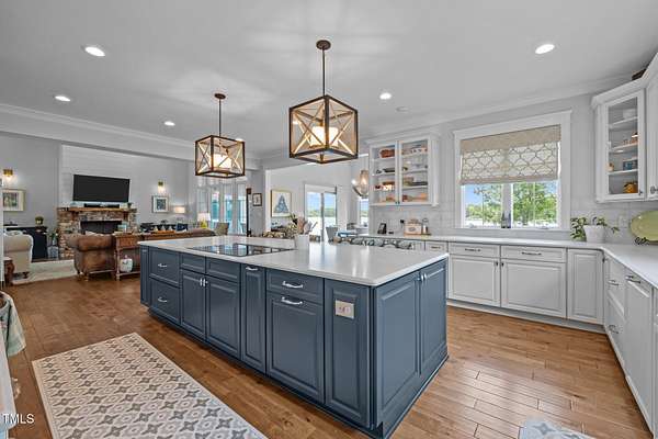 - Bookcases, Built-In Features, Ceiling Fan(s), Crown Molding, Double Vanity, High Ceilings, Kitchen Island, Natural Woodwork, Open Floorplan, Pantry, Room Over Garage, Stone Counters, Vaulted Ceiling(s), Walk-In Closet(s), Walk-In Shower, Wet Bar, Wired For Sound
