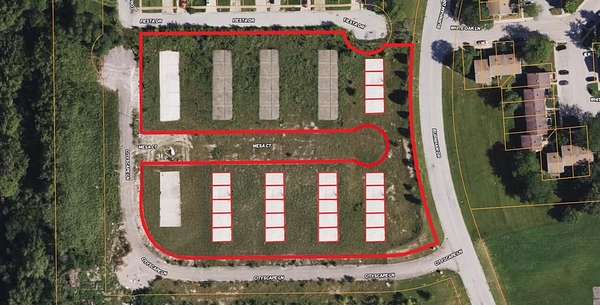 Approximately 3.2 acres of developable land located along highly traveled Burnham Drive, offering over 300 feet of road frontage with additional access from multiple paved roads. This unfinished development already features 24 existing concrete housing pads with room for an additional 24 more housing pads (see sky view), providing a strong foundation for future construction and development. Situated in a desirable Chicago suburb approximately 30 miles south of downtown Chicago. Excellent opportunity for builders or investors seeking a well-located residential development site. The property is priced to sell (less than even tax value) and the property taxes are paid until 2027 and your total closing costs are just $795.