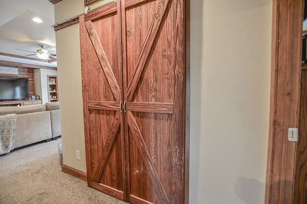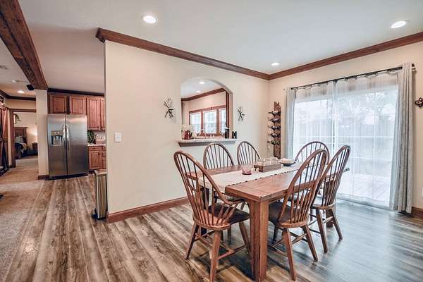 This spacious country retreat sits on a gorgeous 5 acre lot in the coveted community of Harper, Tx. Step inside to discover this 4 bedroom, 2 bath home that blends comfort and contemporary amenities. The kitchen features a large island/breakfast bar and is equipped with all stainless-steel Frigidaire appliances. A large pantry with sliding wood doors adds a touch of rustic charm while providing ample space, matching the beautiful wood beams and trim throughout. The living room has nice built-ins and a surround sound system. The spacious primary bedroom is complemented by a huge walk-in closet and bathroom which offers ample space, a walk-in shower, and soaking tub. The home's oversized utility room is another standout feature, complete with a sink & additional space for a second fridge & freezer. The 2017 home is retrofitted on permanent foundation, & 400 amp electric service has been installed (200 for house 200 for a future shop). Outside, relax around the fire pit or by the seasonal creek which forms the back boundary of the property. Beautiful oaks abound throughout the 5 acres of level to gently rolling terrain. Don't miss your opportunity to make this dream property your own!