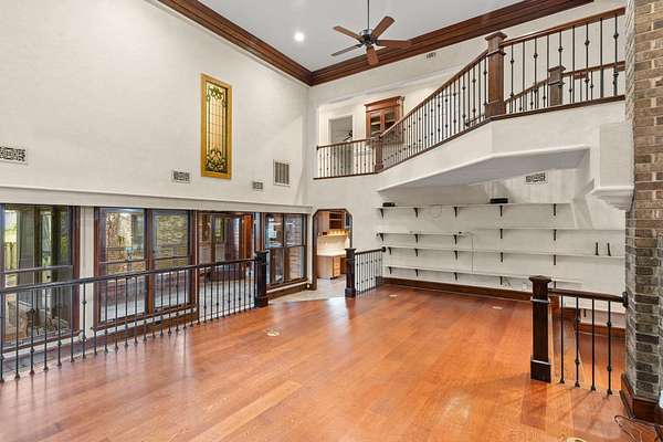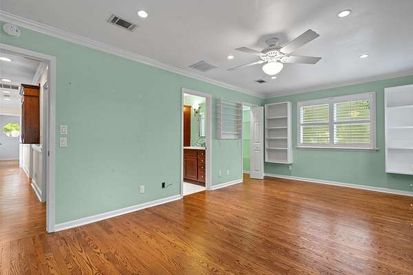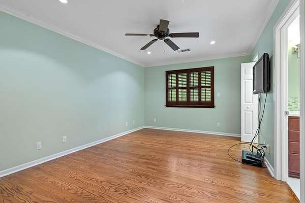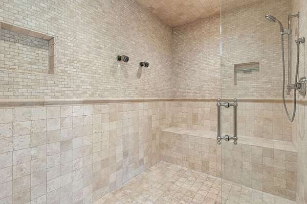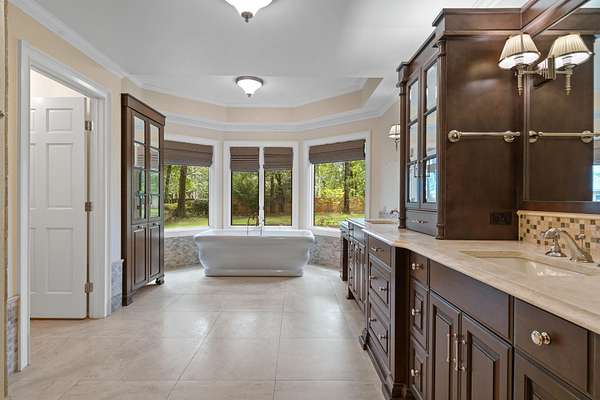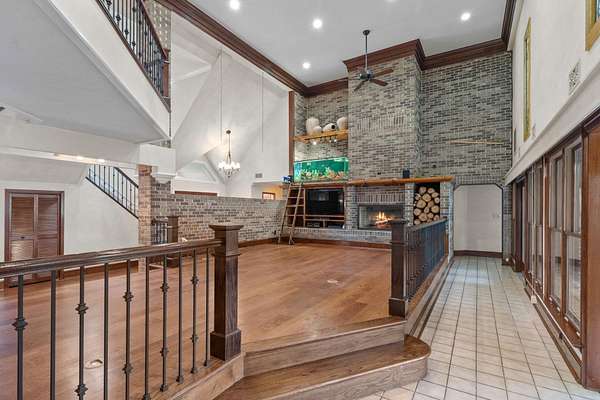 This beautifully crafted home offers a spacious two-car side-entry garage plus a detached two-car garage. Inside, the custom eat-in kitchen features abundant cabinetry, two pantries, and a built-in desk. The inviting family room includes a fireplace and built-in bar with a full bath nearby, while the formal dining room and office with chimney, shutters, and built-ins add charm and functionality. The luxurious primary suite on the first floor boasts tray ceilings, a fireplace, custom built-ins, a private outdoor sitting area, and an oversized closet. The spa-like bath includes a soaking tub, double custom vanity, heated towel rack, and a walk-in shower with four heads. Secondary bedrooms offer walk-in closets, built-ins, a Jack-and-Jill bath, a private bath, laundry chute, and wainscoting in one. Additional highlights include a sun porch, double-door entry, half bath, real hardwood floors, and an oversized laundry room with a dog wash and built-in ironing board. This home is the perfect blend of comfort, craftsmanship, and custom detail.