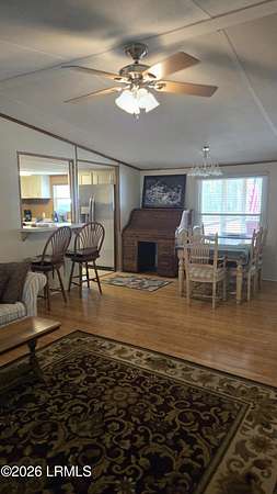 Three bedroom, two full bath mobile home on SIX (6) acres! Peaceful Lowcountry living less than 1/2 mile from Sam's Point Road boat landing.This well-maintained home offers an open living area, a functional kitchen with ample cabinet space. The primary suite features an ensuite bath, while two additional bedrooms share a full bath. Enjoy the peace and privacy of country living with plenty of room for gardening, animals, recreation, or future improvements. The expansive acreage provides endless possibilities while still offering convenient access to nearby amenities. A great opportunity for those seeking space, privacy, and affordability.