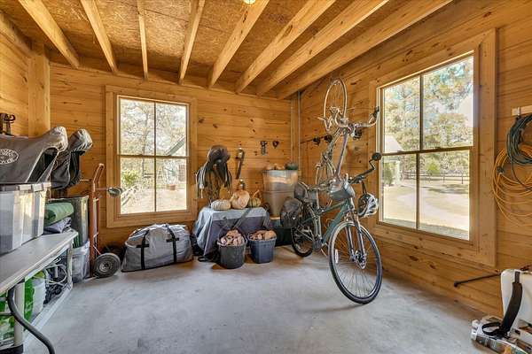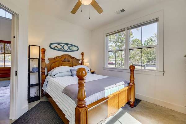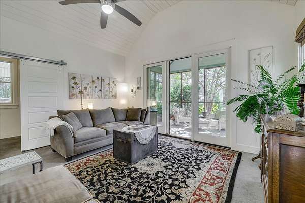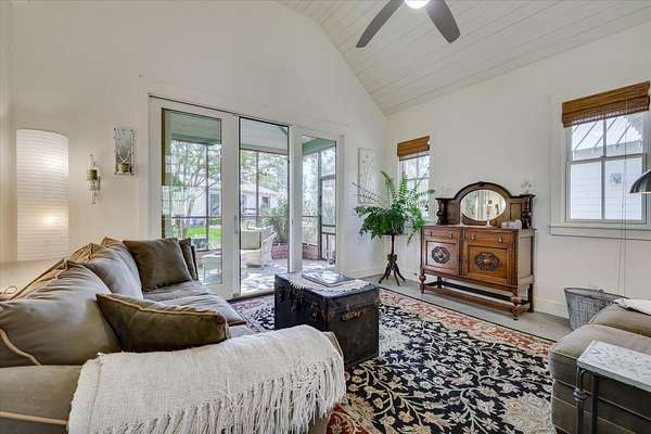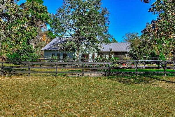 Located within the equestrian community of Three Runs Plantation, this well-designed 5-acre property offers a primary residence plus a guest cottage, established horse facilities, and direct trail access-positioned directly across from the community arenas and activity center. The charming main 2-bedroom, 2-bath cottage offers 1,414 sq ft, with an open living and kitchen layout, a vaulted ceiling, and a screened porch. The kitchen features granite countertops, stainless steel appliances, and a gas range. The primary suite includes an adjacent bath with a walk-in shower and a walk-in closet. A second full bath offers a tub/shower combination. A laundry/mudroom with a washer/dryer and a carport provides everyday functionality. A separate 1-bedroom, 1-bath guest cottage provides approximately 682 sq ft and includes a full kitchen with granite countertops, stove, refrigerator, microwave, dining area, walk-in closet, washer/dryer, and a full bath with a tub/shower combination-ideal for guests or caretakers. The equestrian amenities include a 4-stall barn with individual paddocks, four additional fenced pastures, hay storage, and a tack room. The property is beautifully landscaped, including blueberry bushes, fig trees, raspberries, and blackberries, and includes an irrigated garden. Three Runs Plantation offers extensive community amenities, including over 30 miles of groomed trails, two arena complexes with dressage (mirrored), jump, and cross-country schooling facilities, clubhouses with meeting space and library, swimming pool and picnic pavilion, fitness center, natural gas, and fiber-optic internet availability.
