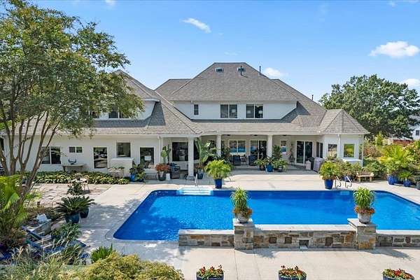 Welcome to your private oasis! This stunning, luxury estate offers the perfect blend of elegance, comfort, and outdoor living. Nestled in the prestigious Highlands neighborhood, this custom-designed home boasts expansive living spaces, soaring ceilings, and refined finishes throughout. Outside, find an entertainer's dream backyard--complete with pool, incomparable lush landscaping, and multiple seating areas perfect for relaxing or hosting. Inside, you'll find a gourmet chef's kitchen, grand living and dining areas, a spacious primary suite with a spa-like bath. With 6 spacious bedrooms and 6.5 beautiful bathrooms, this home is designed for both everyday living and entertaining. A home office provides the ideal remote work setup and a large multi-purpose room offers endless flexibility. The neighborhood offers trails with access to Johnson Park and its amenities. Don't miss the opportunity to own this one-of-a-kind property that combines luxury living with incredible outdoor amenities.