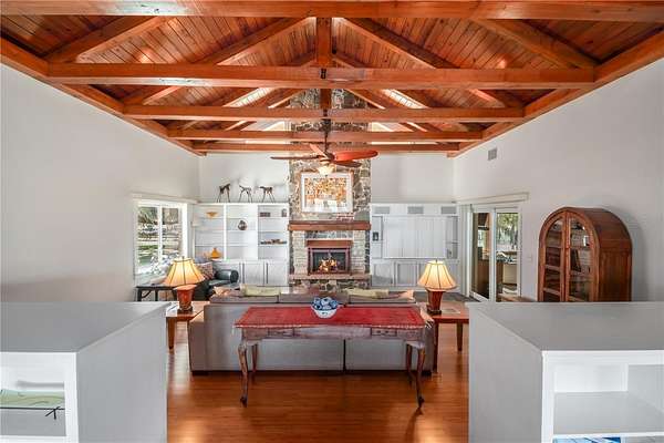 Tucked away on 12-acres of countryside, this thoughtfully designed equestrian estate blends comfort, functionality, and peace of mind. Surrounded by larger properties that enhance privacy, this farm features a perimeter riding lane and is secured with 3-board and diamond mesh no-climb fencing. Whether you're a serious equestrian or simply seeking a quiet country retreat, this farm offers it all. As you enter the gate, the paved driveway splits allowing you to follow back towards the barn or towards the home's circular driveway with portico. Offering a total of 4-bedrooms and 3-baths, the home has been fully renovated with over 3,100 sq ft of space with bamboo and tile flooring running throughout. The heart of the home is an open great room, which features 18' beamed ceilings and a large wood-burning fireplace framed in stone and flanked by custom built-ins. The kitchen is a cook's dream with hickory cabinetry, granite counters, a stainless gas range with pot filler, and custom pantry storage, including pull-out shelving and lazy Susans. A large island seats six, while the adjoining butler's pantry/laundry area features a second full sink and abundant cabinetry. A private guest suite rests to one side of the home with its own private bath, offering ideal in-law or visitor accommodations. The primary bedroom is spacious and serene, with built-ins under a picture window, dual walk-in closets with custom drawers and shelving, and a luxurious en-suite featuring dual vanities, soaking tub, walk-in shower (steam-ready), and skylight. Two additional guest bedrooms share a full bath, and are located on the same side of the home as the primary bedroom. Off the kitchen, the three-sided windowed sunroom expands your living space with a cathedral ceiling, 2 wine fridges, built-ins, 9.1 surround sound, and panoramic views of the back pasture. Step onto the large, covered open-air room with 18' ceilings and a wall-mounted TV--perfect for relaxing or entertaining and the private back yard. The center aisle barn has six stalls, grooming stall, wash rack with tankless hot water, AC tack room, feed area, mounted fans, copper gutters, and metal awnings. Two additional barn structures provide six more stalls /run-outs across three bays each, with mats, fans, electric, and water, ideal for turnout or overflow. The entire property is equipped with solar- three PV systems totaling 20.5KW (owned outright)--which deliver significant utility savings. The home, barn, and sheds are fully wired, with cameras, power outlets, and water spigots thoughtfully placed throughout. Additional features include an outbuilding with massive flex space / storage and a climate-controlled section with mini-split, laundry, sound system, and lots of possibilities. The tree studded property has great ground and is the ideal location. Located just 10 minutes from Sweet Dixie South, 15 minutes from HITS, and 20 minutes from WEC, this farm is ideal for those looking to get the most out of Horse Country!