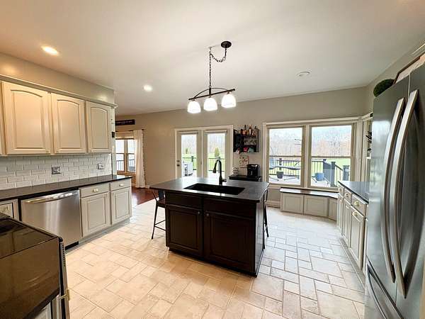 Nestled on 2.5 acres, this stunning 3 bedroom with option for a 4th, 3.5-bathroom residence offers the perfect blend of luxury and serenity. With over 3,000 square feet of finished living space, this home is ideal for families seeking a spacious and sophisticated haven. The main level features an expansive living room, dining room, kitchen, and secondary living space or study, accompanied by a half bath and pantry. The kitchen and dining areas boast picturesque views of the rolling acres, creating a tranquil atmosphere. An expansive deck, accessible from the kitchen, provides ample space for entertainment and relaxation. The upper level features a spacious master bedroom, two additional bedrooms, and a bonus room. The master suite boasts an expansive walk-in bathroom, complete with dual vanities, a claw-foot tub, and a large tiled shower. A washer and dryer hookup is conveniently located within the master closet. All bedrooms feature generous closet space and an abundance of natural light. The lower level offers a full bathroom, laundry room, and additional bonus area, perfect for relaxation, entertainment, or storage. The basement provides easy access via a walk-out design, complete with a wood stove and ample storage space. This home provides a paved driveway and a two car attached garage. Updates in the home consists of, but not limited to a remodeled kitchen, bathrooms and much more. Schedule your showing today and unlock the possibilities this home has in store for you.