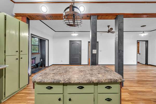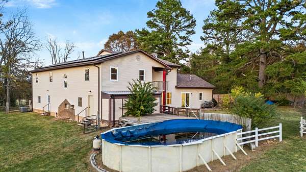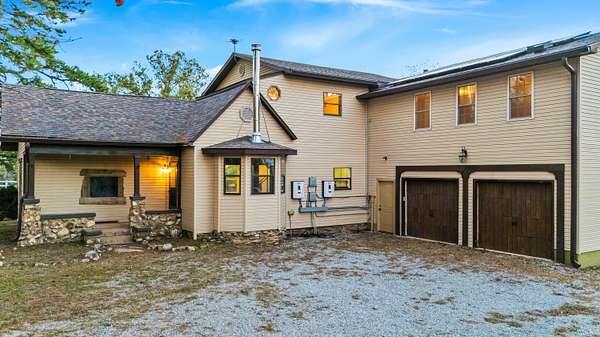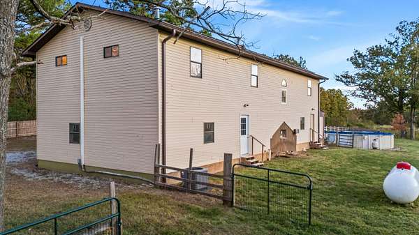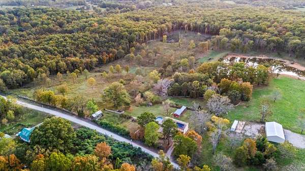 Welcome to your new home!Located in the heart of the Ozarks, is this convenient and well-situated home.The house has 4 bedrooms, 4 bathrooms, and a layout that supports a large or growing family or an extended family. There's also a second kitchen suitable for home-based projects and pursuits or commercial use and a cellar.Property includes approximately 20 fenced in acres for recreation, hunting or development, a large garden area, an outbuilding with a lean-to, and an additional dwelling.The second living space, a small cabin, is perfect for providing privacy for guests or could be a potential income producing rental. It includes one bathroom, a kitchenette, and a living area.This place offers sustainability by being equipped with solar panels and a full battery storage system, its own private well and septic tanks, and a wood stove.Tranquility with easy access to nearby city amenities could be yours. Book your showing today!