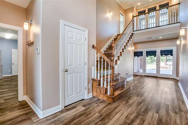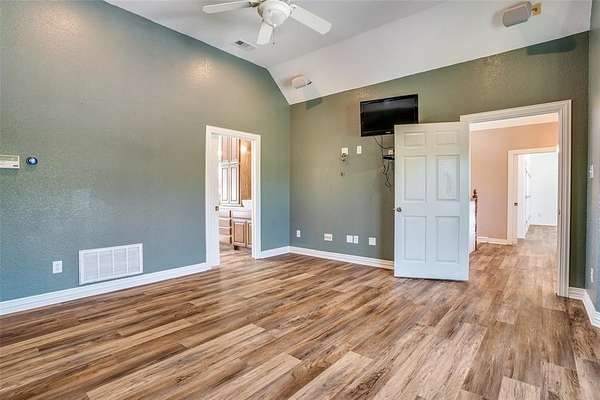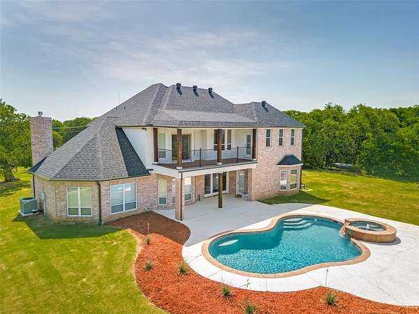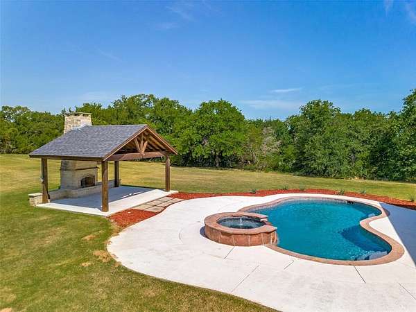 The oversized three-car garage includes an 865 square foot, one bedroom, one bath apartment--perfect for guests or multi-generational living. Outdoors, a pergola with a wood-burning fireplace overlooks the sparkling pool. No-climb pipe fencing with gated entry, and energy-efficient upgrades add to the property's appeal. Located just 7 miles from Lake Ray Roberts and within an excellent school district, this property offers both convenience and serenity.