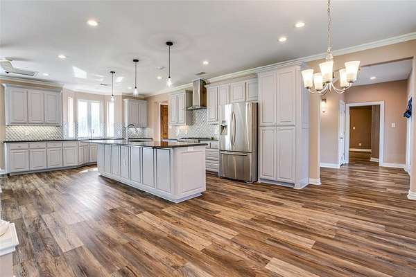 - Built-In Features, Built-In Wine Cooler, Chandelier, Decorative Lighting, Double Vanity, Eat-In Kitchen, Flat Screen Wiring, Kitchen Island, Open Floorplan, Sound System Wiring, Walk-In Closet(s)