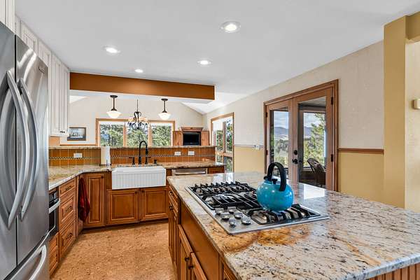 Farmhouse sink and granite countertops