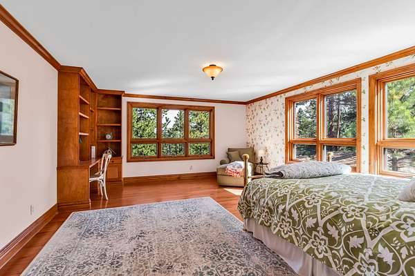 Master Bedroom: Features hardwood floors, built-in desk and bookcase, detailed woodwork