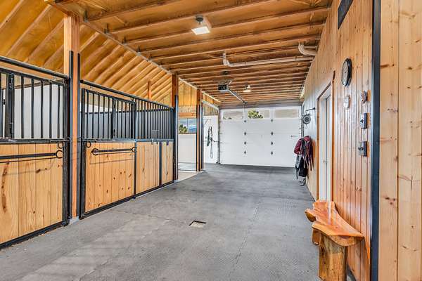 The barn is a full equestrian setup: