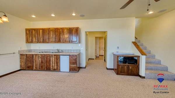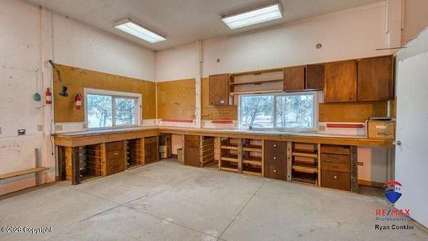 This beautiful property sits on 81 acres with great views and minutes from Keyhole Marina. Inside, you'll find a spacious floor plan with large rooms. Black walnut cabinets accent throughout the home and give the kitchen a warm feeling with ample counter space, and a big pantry. The primary suite is a great setup opening onto the back deck. Basement area offers a bedroom, family room area, and wet bar. The ''Studio'' is a 780-square-foot space with a kitchenette, bathroom, and perfect for guests, workouts, or extra living space. The shop measures 68 by 40 feet and is divided into two areas, with a concrete floor in about a third of the space. There's also a 16 by 40 foot outbuilding for camper or other storage. This perfect ranchette includes ponds, trees, and a large fenced garden.