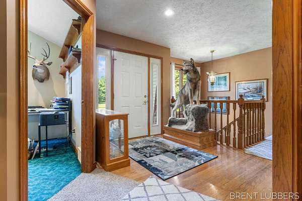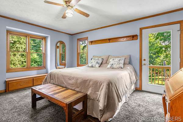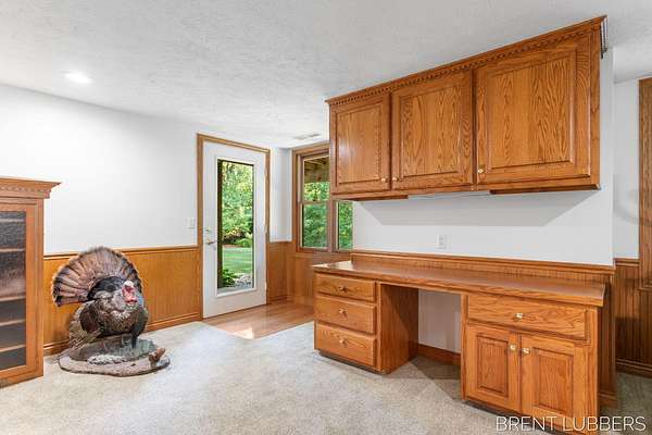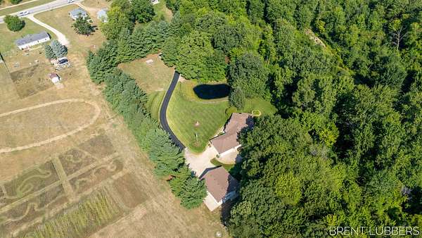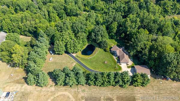 Escape to your own private retreat with this 3,335 sq. ft. home on 10 wooded acres, featuring 5 bedrooms, 2.5 bathrooms, and expansive living spaces designed for both relaxation and entertaining. Pride of ownership shows in this one-of-a-kind property, builder-built and owned for 31 years, featuring custom oak cabinets and detailed trim throughout. The heart of the home is a spacious 400 sq. ft. step-down living room with cathedral ceilings and a cozy wood-burning fireplace, perfect for gatherings year-round. The main floor offers a private master suite with ensuite bathroom and walk-in closet, plus a second bedroom with closet (ideal for guests or as a home office), and a convenient half bath. The finished lower level expands your living space with three additional bedrooms, a full bathroom, a large living room, and a walk-out exit to the backyard. Throughout the home, you'll find ample closets and storage areas designed to keep everything organized. Follow the long winding driveway to the private property that combines natural beauty with conveniencejust 1 mile from Allendale schools, 5 miles from GVSU, and 20 miles from Grand Rapids, Holland, and Grand Haven. The grounds include a pole barn, pond, and custom-built swing set, making this home a rare blend of craftsmanship, comfort, and outdoor enjoyment.