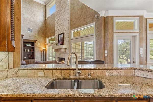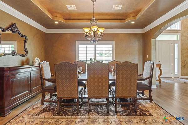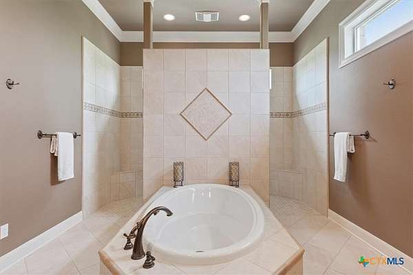 - Attic, Bookcases, Built In Features, Carbon Monoxide Detector, Ceiling Fans, Crown Molding, Dining Area, Double Vanity, Entrance Foyer, Garden Tub Roman Tub, High Ceilings, Home Office, Main Level Primary, Multiple Living Areas, Primary Downstairs, Pull Down Attic Stairs, Recessed Lighting, Separate Formal Dining Room, Stone Counters, Tray Ceilings