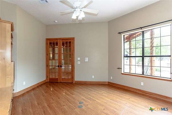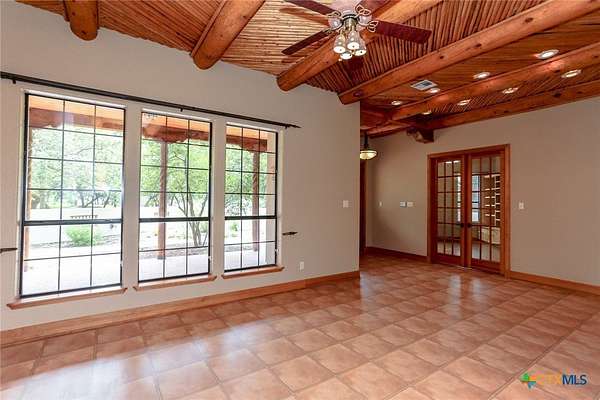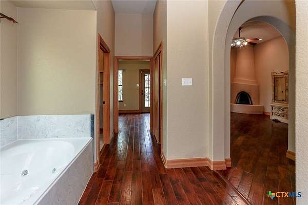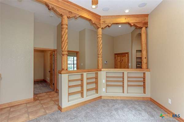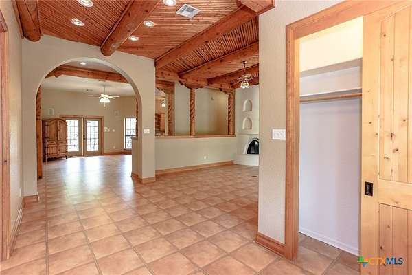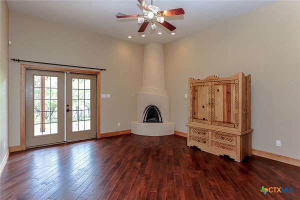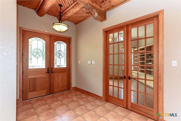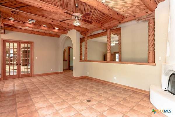 Welcome to your serene Belton, TX retreat! Nestled among mature trees, this unique residence boasts rustic charm combined with modern comforts. The home offers over 4,100 square feet of living space, 3 fireplaces, a rooftop deck, and sits on 2.2 acres, in a cul-de-sac. The warm, inviting interior features rich wood accents, exposed beams, and classic Southwest design. Revel in a spacious kitchen with ample cabinetry, quartz countertops, two pantries, double ovens, and an island with a gas cooktop, ideal for culinary exploration. Multiple living spaces present versatility, while the distinctive tile and hardwood floors add character throughout. Retreat outdoors to a large rooftop deck perfect for Texas sunsets. The four-car garage offers plenty of room for a workshop and there is additional parking for your RV or boat. This exquisite property is just minutes from the University of Mary Hardin-Baylor, Stillhouse Lake, and quick access to Interstate 35. Embrace privacy, tranquility, and the opportunity to make this house your forever home. Your Belton haven awaits!