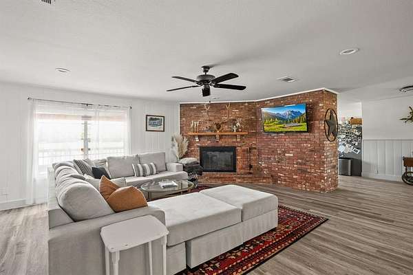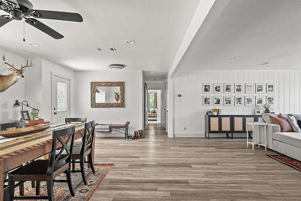 Welcome to this inviting single-story home nestled on a beautifully shaded lot surrounded by mature trees, offering the peace and privacy of true country living. Situated on almost 2 acres, this property combines natural beauty with modern comfort. Step inside to an open-concept floor plan featuring luxury vinyl plank flooring throughout the main living areas, creating a warm and cohesive space ideal for entertaining or relaxing. The spacious family room centers around a cozy wood-burning fireplace, perfect for cool country evenings. The kitchen is a chef's dream, boasting granite countertops, stainless steel appliances, a built-in cooktop, and ample counter space. Each room offers generous proportions, with plush carpet in the bedrooms for added comfort. Enjoy outdoor living on the large back patio, ideal for summer barbecues or quiet mornings with a cup of coffee. With plenty of room to roam, garden, or simply enjoy the natural setting, this property is perfect for those seeking space, serenity, and a connection to nature.