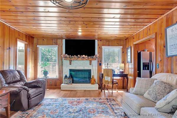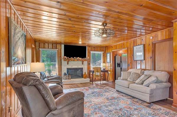 Welcome to this beautifully updated 3-bedroom, 3-bath home located on 2 peaceful acres overlooking a stocked pond. Step inside to find a spacious living room with a cozy fireplace, a formal dining room with its own fireplace, and a versatile flex room perfect for an office, playroom, or additional bedroom. Outside, you'll find a huge barn with 4 bays offering endless storage and workshop opportunities. Whether you're looking for space to relax, entertain, or pursue hobbies, this property has it all. Upgrades include: 2025: new storm doors, 2024: fully remodeled guest bathroom, new luxury vinyl plank flooring in kitchen, den, dining, master bedroom, and master bathroom, new light fixtures, hot water heater. 2023: New appliances including stainless steel cooktop, refrigerator, and dishwasher, electric fireplace inserts, painting throughout home, and LVP in the barn. 2021: all new blinds