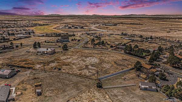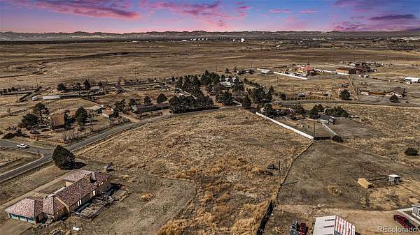 This is one of the last remaining lots in Gun Club Estates! Escape the hustle and embrace the tranquil allure of this picturesque piece of land spanning just under 2 1/2 acres of flat, build-ready terrain. This is the neighborhood for your horses, cows, goats, chickens or similar furry friends. Plenty of room for barns and outbuildings. If a farm isn't your style and you're looking for space for toys this lot can accommodate! Flat and usable with an amazing view of the front range, this is one you need to see. Conveniently located minutes from Southlands mall, boasting an array of shopping, dining, and entertainment options. Enjoy easy access to major thoroughfares like E-470, ensuring effortless connectivity to urban amenities. Positioned within a spacious neighborhood, this parcel offers endless views of Colorado's breathtaking sunsets. With no HOA constraints, envision and craft your dream custom home without compromise, as the possibilities are boundless on this idyllic canvas.