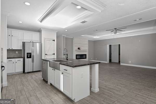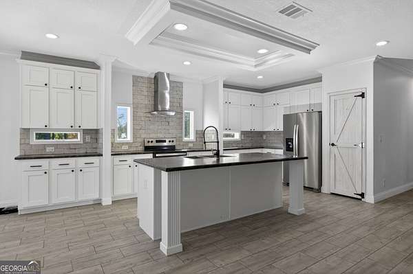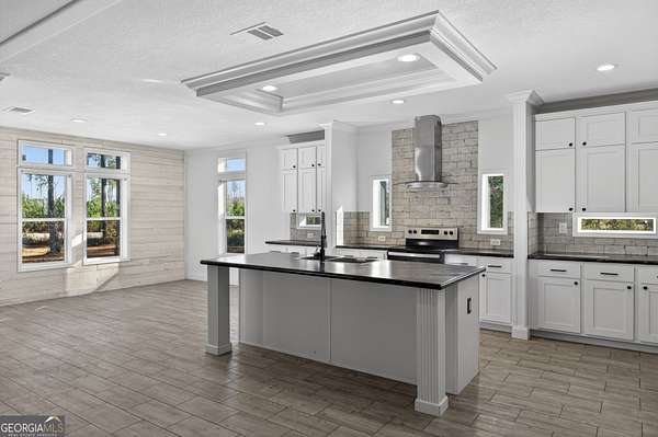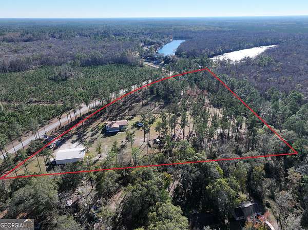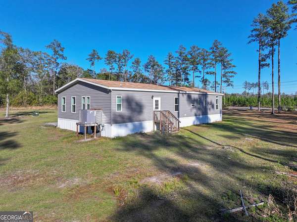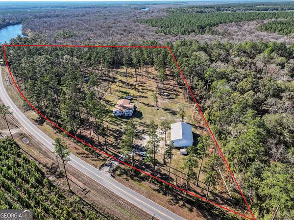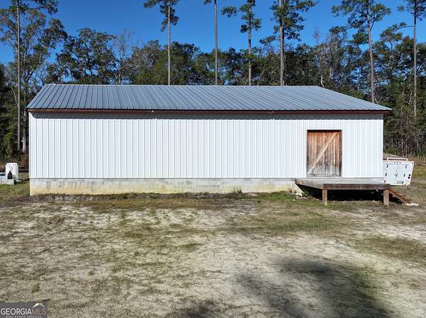 THIS LISTING OFFERS 2 HOMES: FIRST HOME: Welcome to this 2024 Triple Wide situated on 9.13 acres of partially wooded land, offering the perfect blend of rural charm and peaceful living. Step inside and you'll be greeted by a beautiful electric fireplace framed with a stylish shiplap backsplash. The open-concept kitchen features a large island and ample space for a dining table big enough to host holiday gatherings with family and friends. The master suite is generously sized to accommodate any bed with room to spare for additional furniture. The master bathroom boasts a double vanity, a luxurious soaker tub, and a walk-in shower. A nearby flex room can easily serve as a fourth bedroom, nursery, or private office. Off the living room, you'll find two additional bedrooms with a guest bathroom conveniently located between them. SECOND HOME: The metal building says detached garage in qpublic but the owner had it built for it to be a home. There is water, electricity and framed for windows to be cut out already. The slab was built up according to required permitting for flood zone. There is a bedroom with a bathroom in it. Washer and dryer hookup and so much more. A rare opportunity for homesteaders or anyone seeking space, comfort, and tranquility in a rural setting.