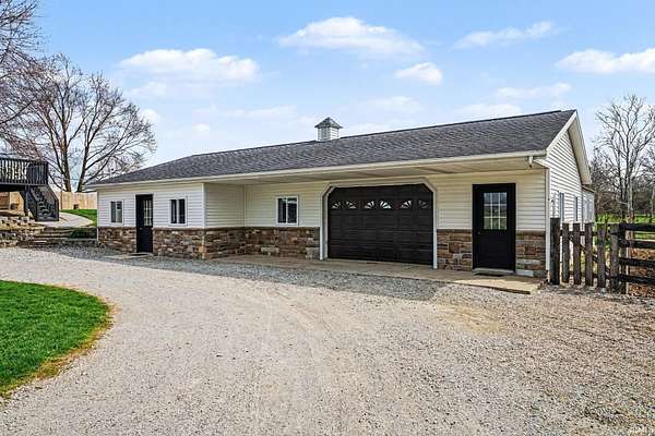 PHONE BID AUCTION ending May 21 at 4pm. OPEN HOUSES April 30, May 7 & 14 from 2-4pm. Updated, move-in ready homestead with great indoor and outdoor living. Covered front porch with stamped concrete, plus a large deck overlooking the backyard and newer poured patio. Upper level offers an open kitchen/living area, two bedrooms, and full bath. Walkout lower-level features two non-conforming bedrooms/flex rooms, a half bath, and washroom/storage room. Insulated, heated shop with overhead door, new solar panels, 300A battery, and 6kW inverter. Barn includes three box stalls and tack room. Only 5 miles to Shipshewana and 7 miles to Middlebury! Home is fully wired but not on the line. STARTING BID IS NOT THE BUY IT NOW PRICE.