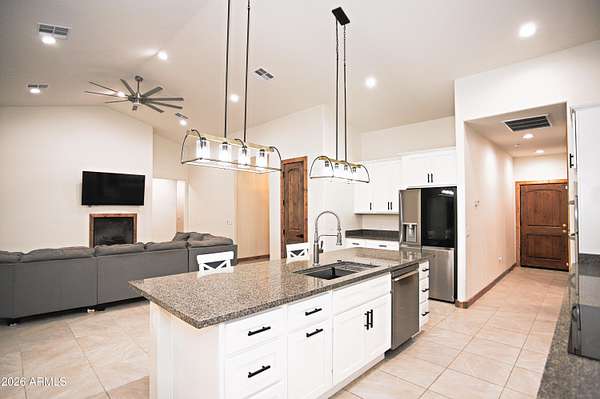 Est $3,989/moThis stunning custom home sits on over 2 acres in the highly desirable Las Montanas community. Designed with quality and comfort in mind, the home features high-end tile throughout, 5 spacious bedrooms, 3.5 bathrooms, a large granite kitchen island, elegant pendant lighting, and beautiful knotty alder doors. The expansive lot offers endless possibilities, with breathtaking mountain views from every angle. The flat, usable land surrounding the home is ideal for a barn, horses, pets, or grazing, making it perfect for those seeking space and versatility. This is truly a dream home for anyone looking for a peaceful yet luxurious place called, home