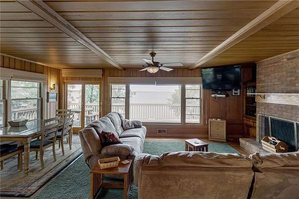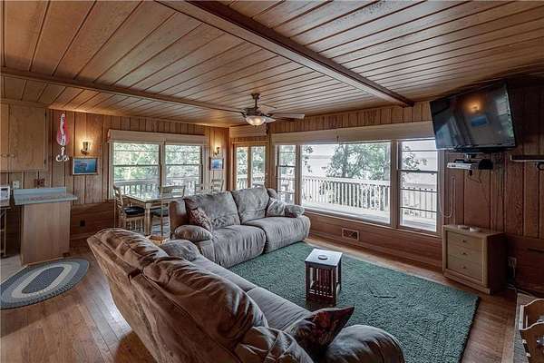 Escape to beautiful Leech Lake, one of Minnesota's top fishing and recreational lakes, with this charming 2-bedroom, 1.5-bath year-round cabin. 106 feet of hard bottom swimming with a gentle slope to the water's edge. Set on 1.76 acres, this property offers privacy and plenty of room to build another outbuilding. Relax on the lakeside deck and take in stunning sunsets and even the Northern Lights. Inside, the main floor boasts warm tongue-and-groove finishes from ceiling to floor and a cozy woodburning fireplace, while a second fireplace warms the walkout basement. The basement also provides the opportunity to be finished for extra living space. Gas forced air furnace with central air will keep you comfortable all year! A beautiful private driveway leads to the cabin and a detached 2-car garage. Just minutes from Walker, MN, you'll enjoy access to shopping, dining, miles of trails, and year-round activities. A wonderful opportunity to own your dream retreat on iconic Leech Lake with excellent value and room to grow!
