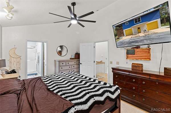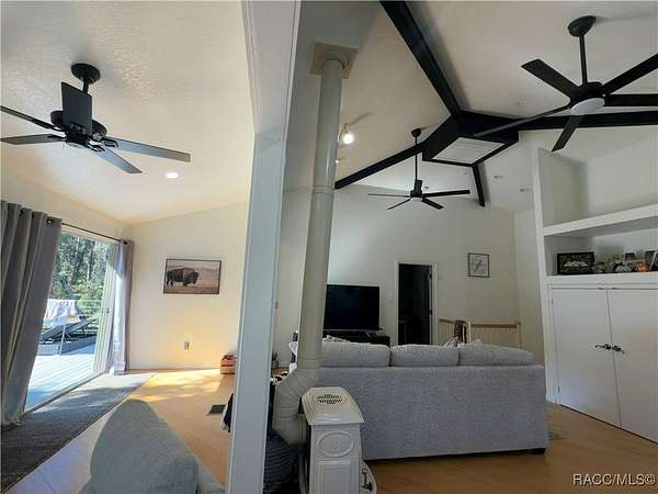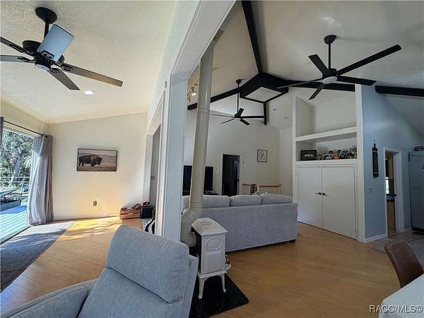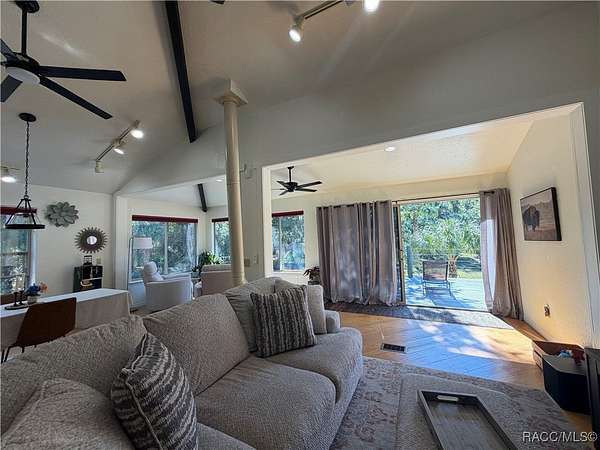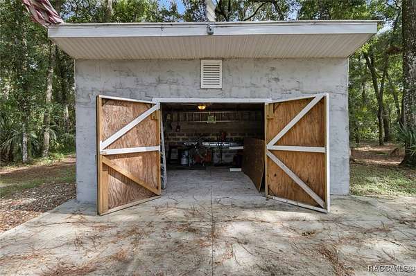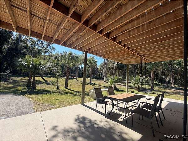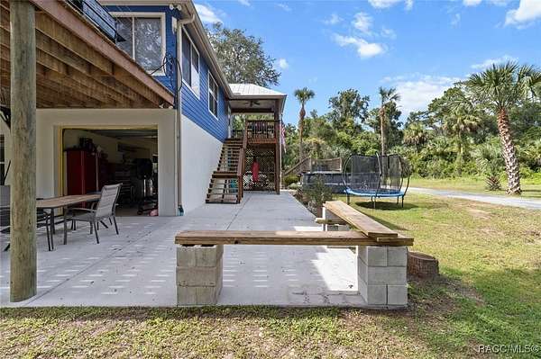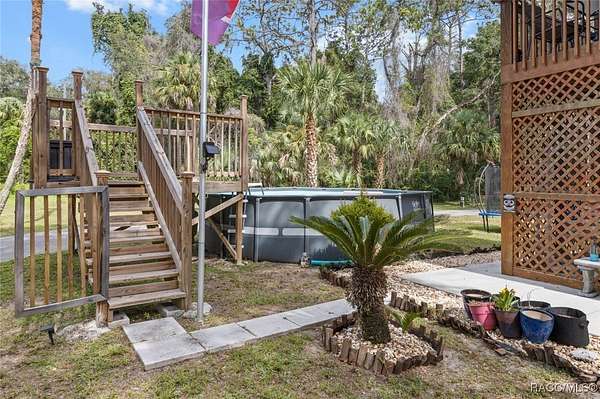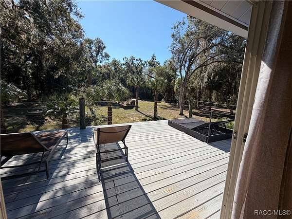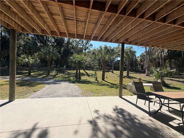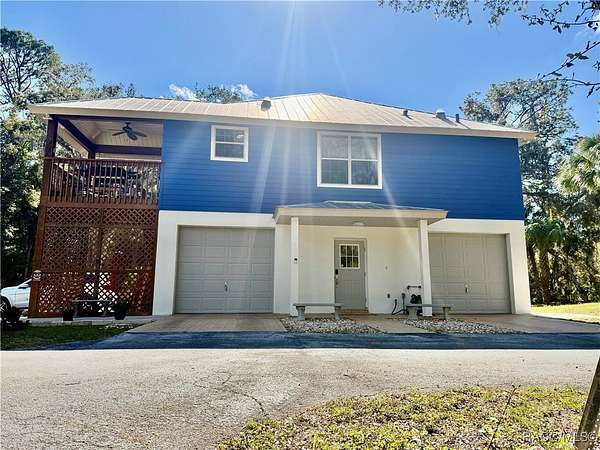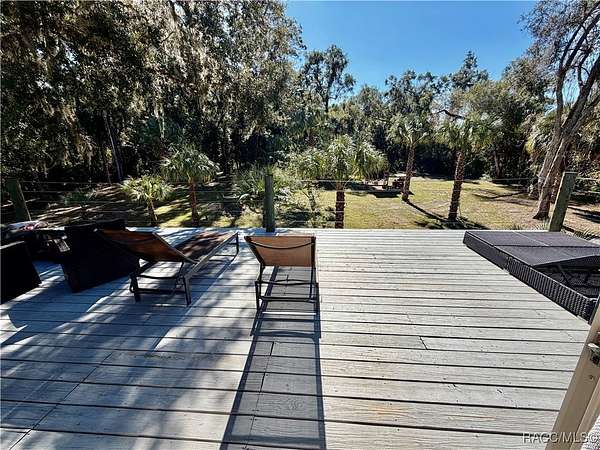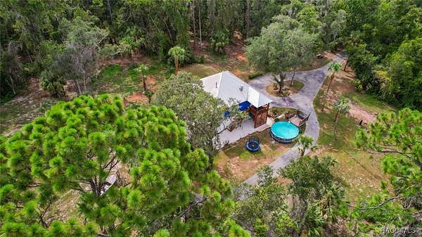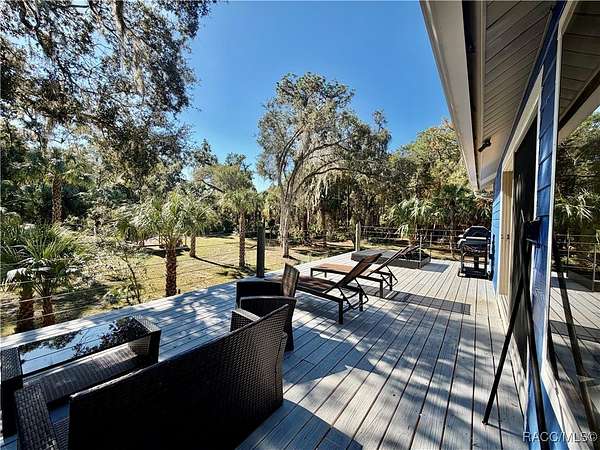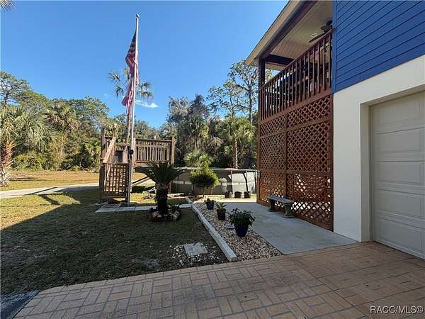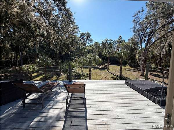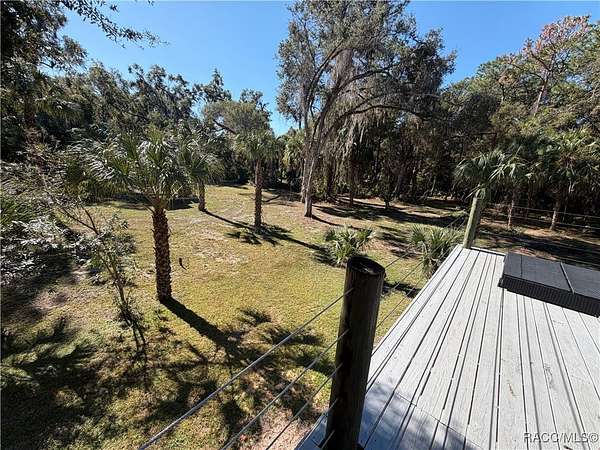 MOTIVATED SELLER - BRING ALL OFFERS!! Don't miss this rare opportunity to own a private retreat just minutes from downtown Crystal River. Tucked away at the end of a 350+ foot winding, tree-lined driveway with concrete columns and a custom mailbox, this home offers complete seclusion and stunning natural surroundings, including regular visits from deer and turkey. The property includes an above-ground pool with a gated deck, a spacious 16x36 two-story rear balcony, a 10x10 covered side deck with lighting and fan, and full-property LED stadium lights that brighten the entire yard at night. Outdoor features also include a shooting berm with 8x8 weather shelter, a chicken coop for six, and a concrete perimeter pad that offers extensive parking for guests and events. The home has two garages-one is a drive-thru two-car garage, ideal for boats and trailers. The second garage also features front and rear doors, offering easy access and functionality. Inside, the downstairs en-suite features a private living space, full bath, large walk-in closet, and serene backyard views-accented with crown molding and wainscoting. Upstairs, an open-concept living, dining, and kitchen area is filled with natural light from large sun windows (with heavy-duty blinds). The chef's kitchen boasts a Sub-Zero fridge/freezer, commercial-grade gas range with a copper hood, granite countertops, under-cabinet lighting, and two updated garbage disposals. Throughout the home, enjoy pine hardwood floors, Spanish tile, fresh paint, LED lighting, and updated ceiling fans. The master suite includes a walk-in closet, a bonus office/closet with nature views, and a master bath with granite counters, built-in soap dispenser, and updated fixtures. All three bathrooms feature new toilets and lighting. The second upstairs bedroom offers a Murphy bed, granite desk with built-in drawers, and custom closet shelving. The metal roof has over 20 years of life remaining and qualifies for wind mitigation insurance discounts. A whole-house fan helps keep things cool in summer. This home offers unmatched privacy, functionality, and space-just minutes from Crystal River's shops, restaurants, and waterfront. The seller is highly motivated, so schedule your private showing and bring your best offer today!