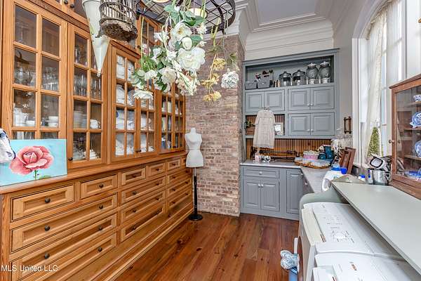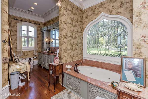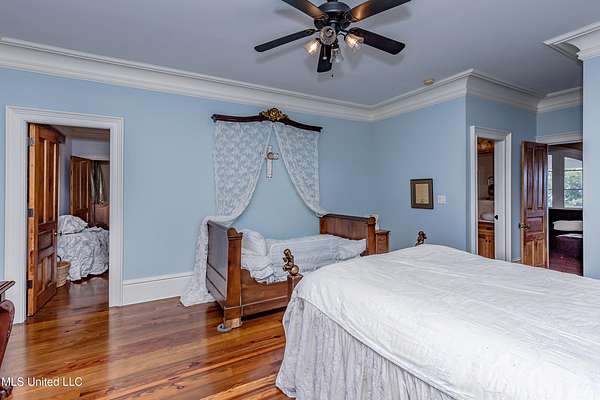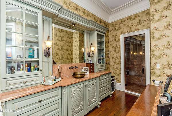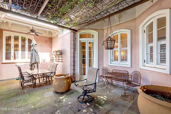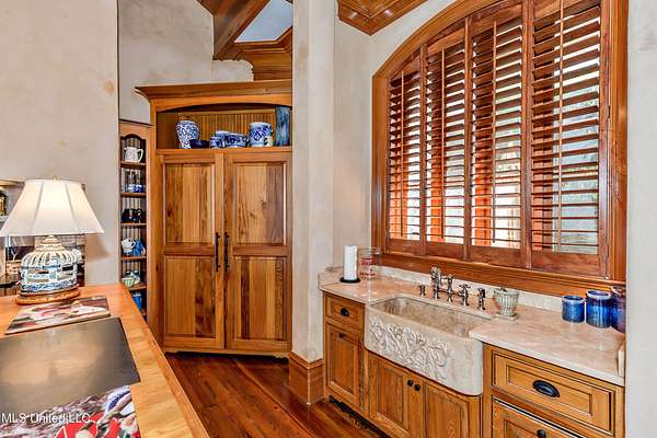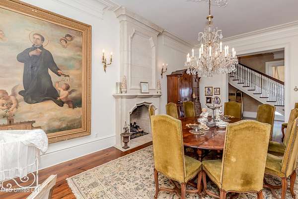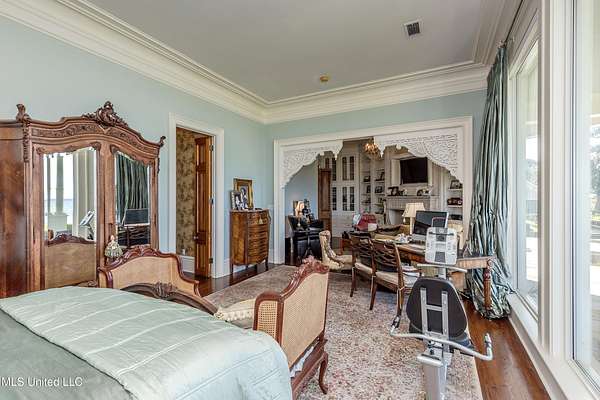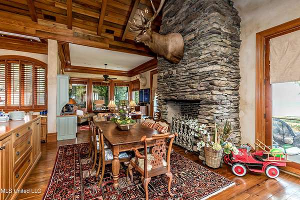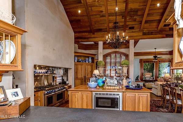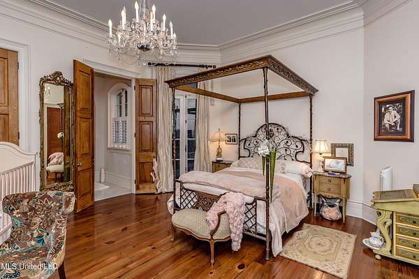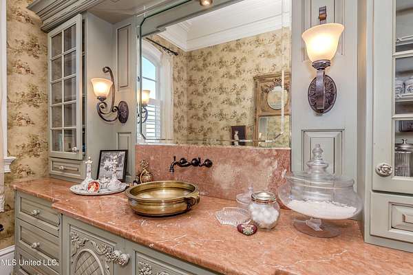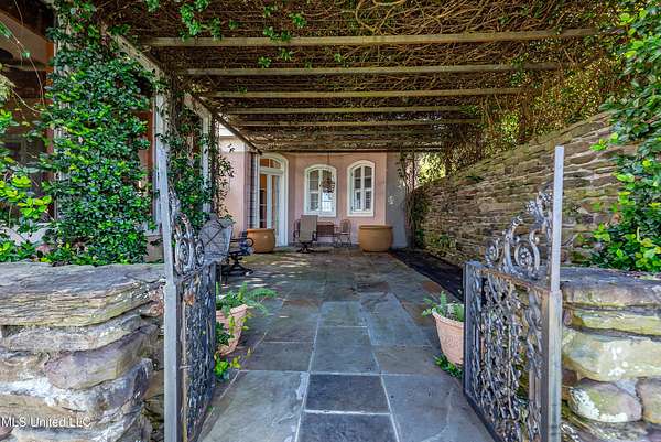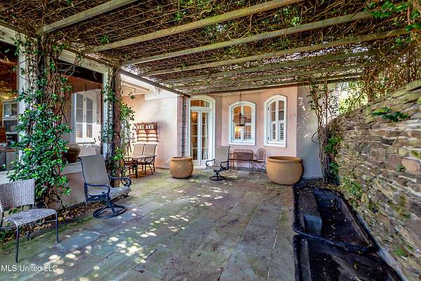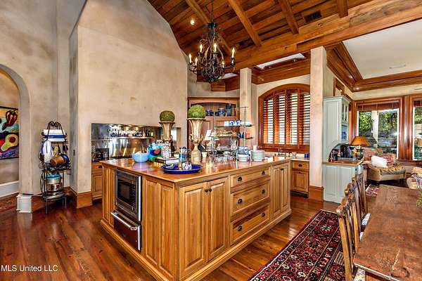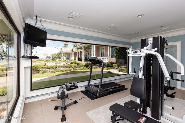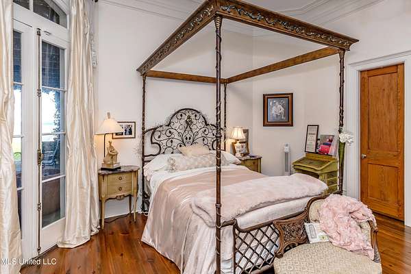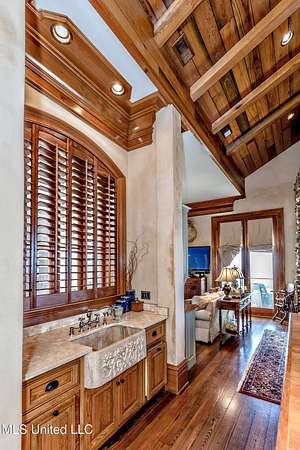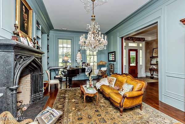 Experience timeless elegance and refined craftsmanship in this breathtaking gulf-front estate offering over 7,000 sq ft of living space on almost 4 private, gated acres. With 242' of concrete bulkhead and a 225' pier with new decking, this rare property blends world-class design, imported finishes, and modern luxuries into a truly one-of-a-kind coastal sanctuary. Grand Entry with timeless priceless chandeliers and custom stone fireplaces. The cantilevered floating spiral staircase is captivating elegance and Venetian plaster walls frame the luxury quality of the architectural New Orleans style home. 12' ceilings downstairs, 10' upstairs, with 10-12'' baseboards and 8-piece crown mouldings. Heart of Pine floors from New Orleans and antique chandeliers imported from England. Custom Sinker Cypress cabinetry, doors, and window casings throughout, including 9' Cypress doors downstairs and 7' upstairs. Corbels imported from Canada, Pennsylvania Blue Stone, and stone fireplaces (including a replica of the Biltmore fireplace imported from Asheville and a custom piece from Atlanta). Interior woodwork imported from New Orleans and St. Louis. Automatic/electric shades, wood shutters, and custom built-ins enhance every space. Chef's kitchen with commercial-grade gas stove, built-in refrigerator/freezer, vaulted Cypress ceiling, and expansive custom cabinetry. Multiple stone fireplaces, including a dramatic stacked stone centerpiece. New large theatre room (1,100 sq ft) above the garage for entertaining. Five-zone air conditioning system, all units just a few years old. 20' stacked stone wall with cascading waterfall in the private courtyard. Glass-walled gym approx (15x15) with panoramic water views. Chlorine pool, koi ponds, and new irrigation well. Outdoor lighting across the entire property creates an enchanting evening atmosphere. Three double garage doors with ample storage and access. Nearly 4 acres of gated Gulf-front land with manicured grounds and ponds. Pennsylvania Blue Stone pathways and custom outdoor living spaces perfect for entertaining. This estate is more than a residence-it is a statement of timeless luxury and unmatched craftsmanship, offering privacy, elegance, and the ultimate Gulf Coast lifestyle.